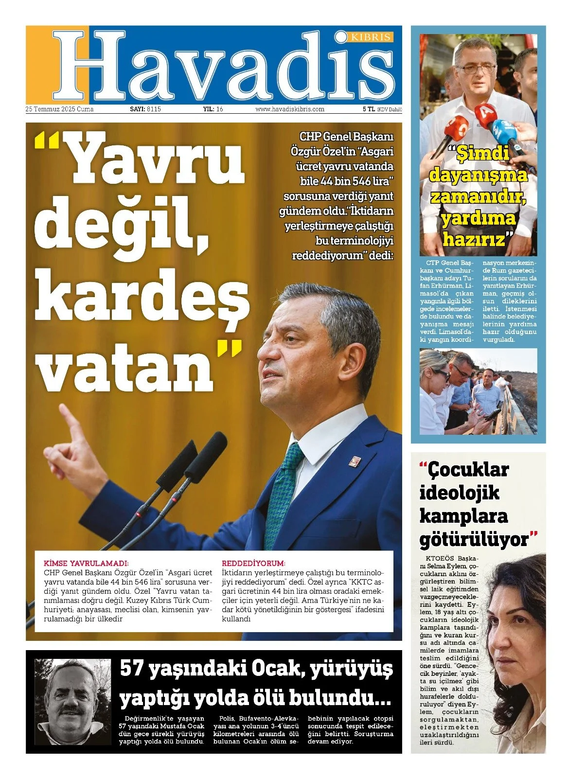 Gazete Manşetleri - 25 Temmuz 2025 KIBRIS 25 Tem Yazan: Feslikan Haber Ajansı KKTC ve Türkiye gazetelerinin manşetleri burada… Ana Sayfa Feslikan Haber Ajansı