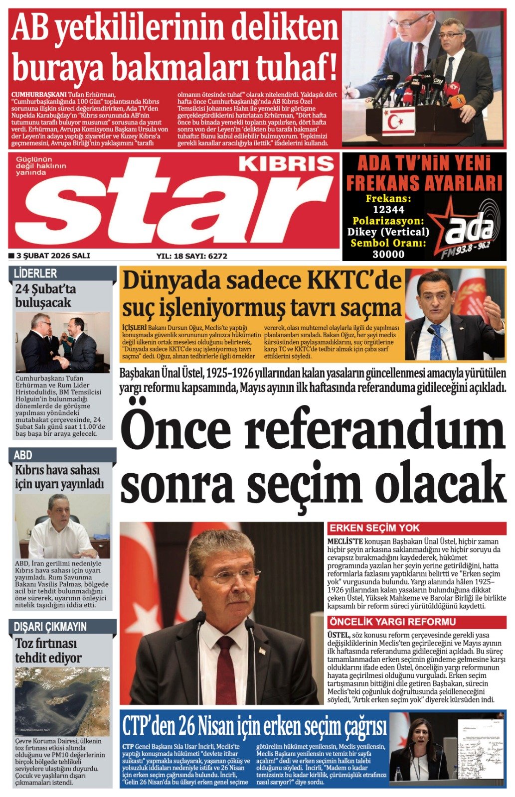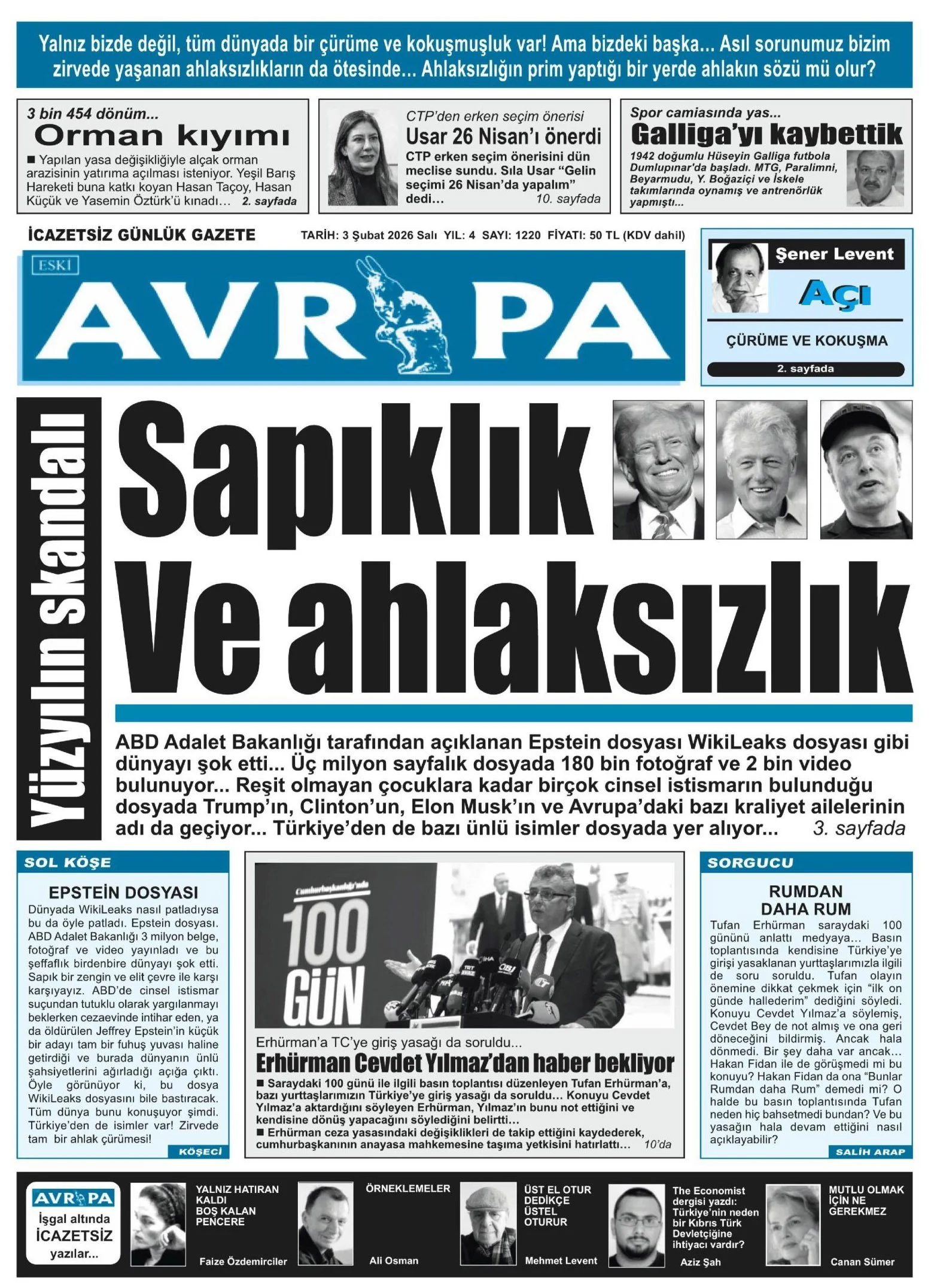 Gazete Manşetleri - 3 Şubat 2026 GAZETE MANŞETLERİ 3 Şub Yazan: Feslikan Haber Ajansı manşetler Feslikan Haber Ajansı