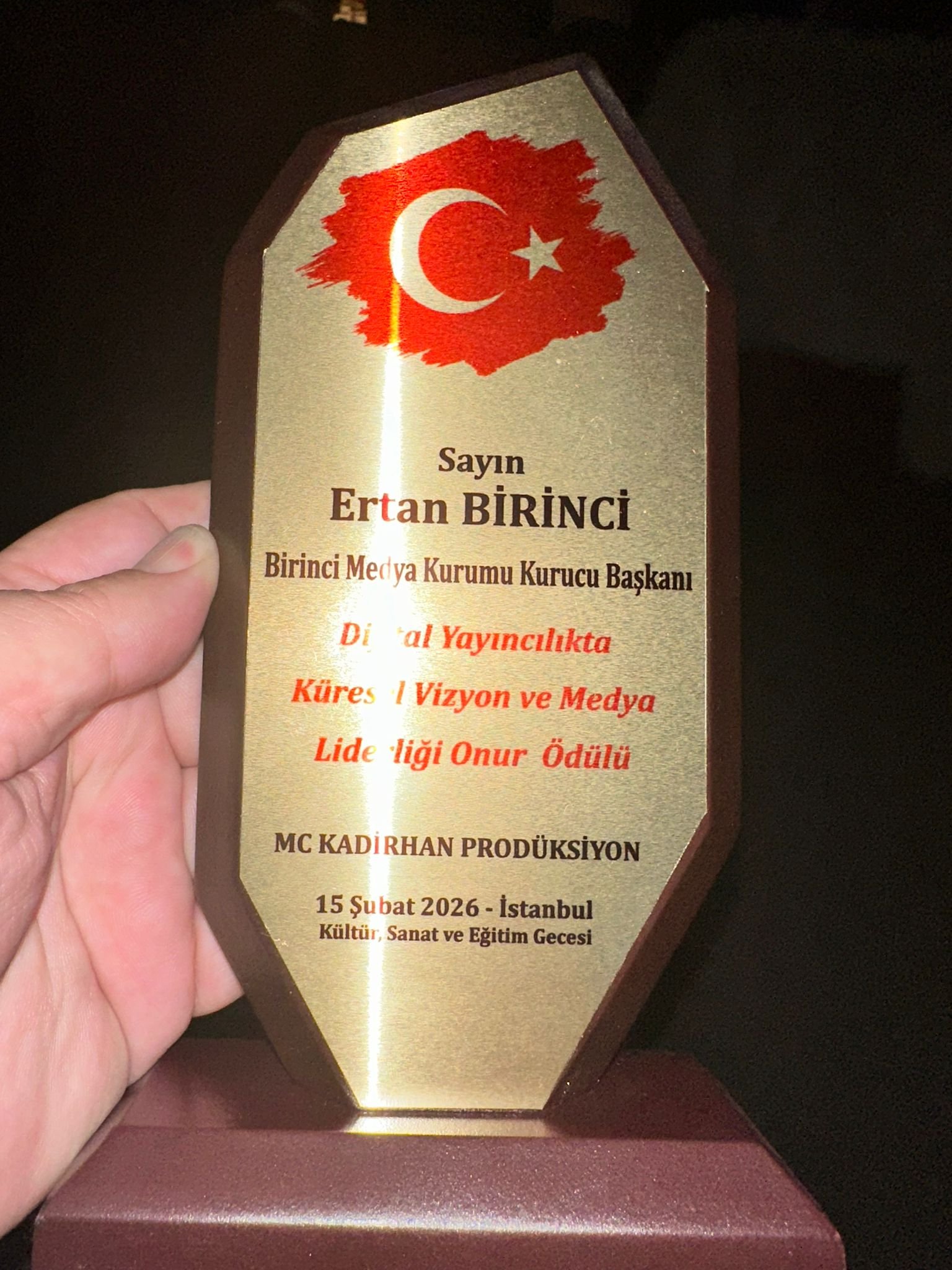 Birinci Medya Kurumu Kurucu Başkanı Ertan Birinci, dijital yayıncılık alanındaki öncü çalışmaları, uluslararası vizyonu ve medya sektörüne kazandırdığı yenilikçi yaklaşımlar dolayısıyla *“Küresel Vizyon ve Medya Liderliği Onur Ödülü”*ne layık görüldü.