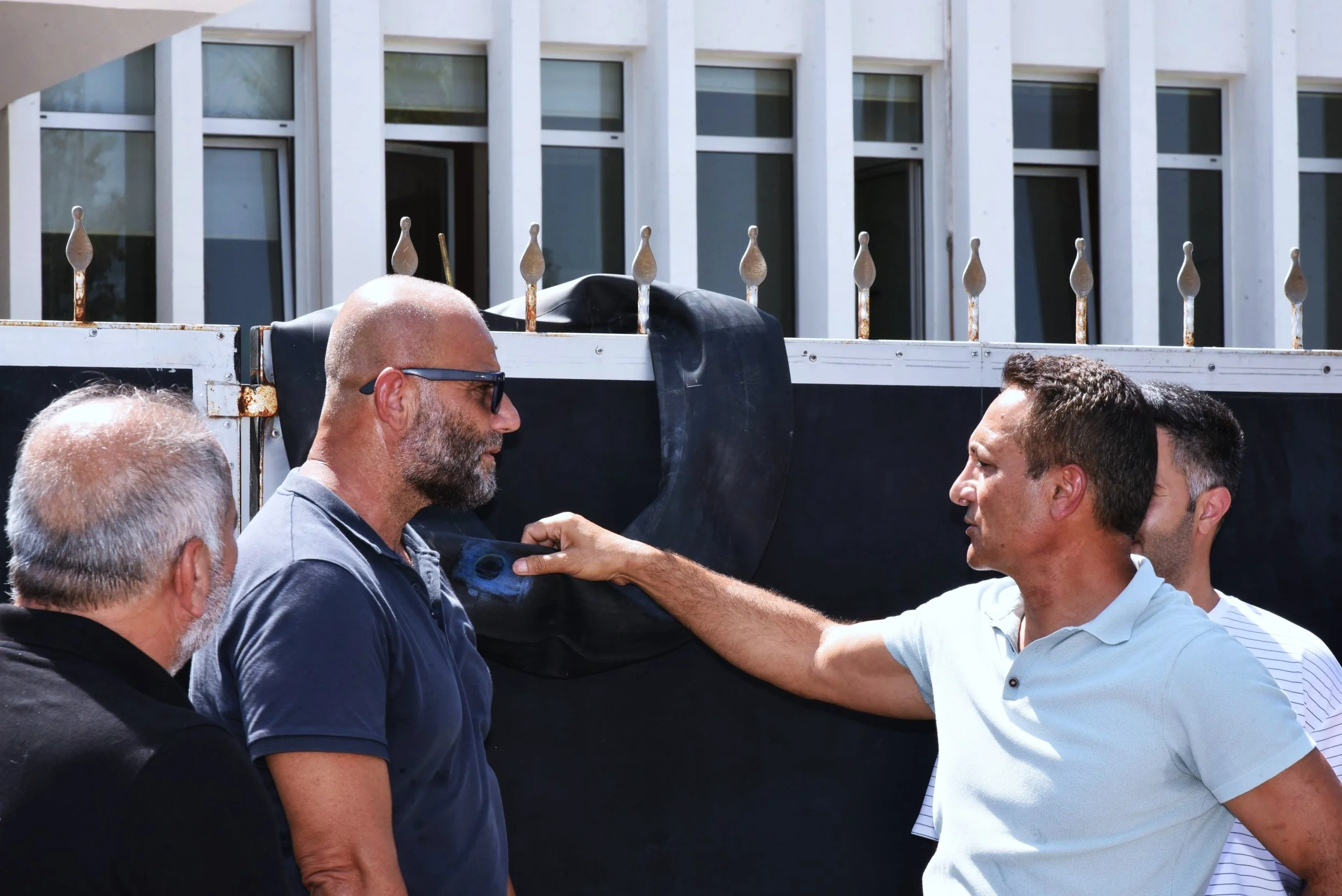 Eylem sırasında dikkat çeken bir protesto sembolü olarak Başbakanlık kapısına “yamalı araba tekerleği iç lastiği” asıldı.