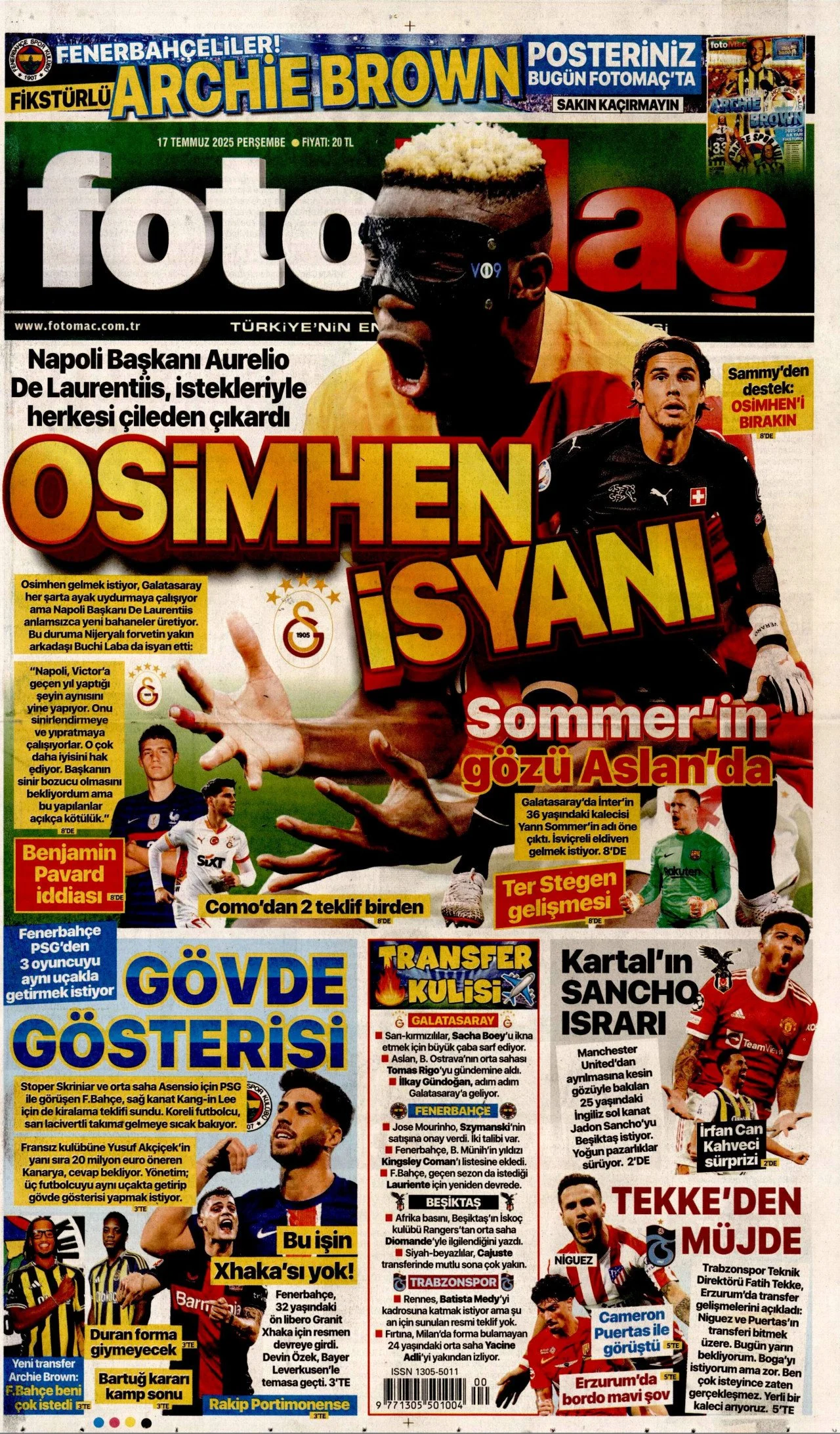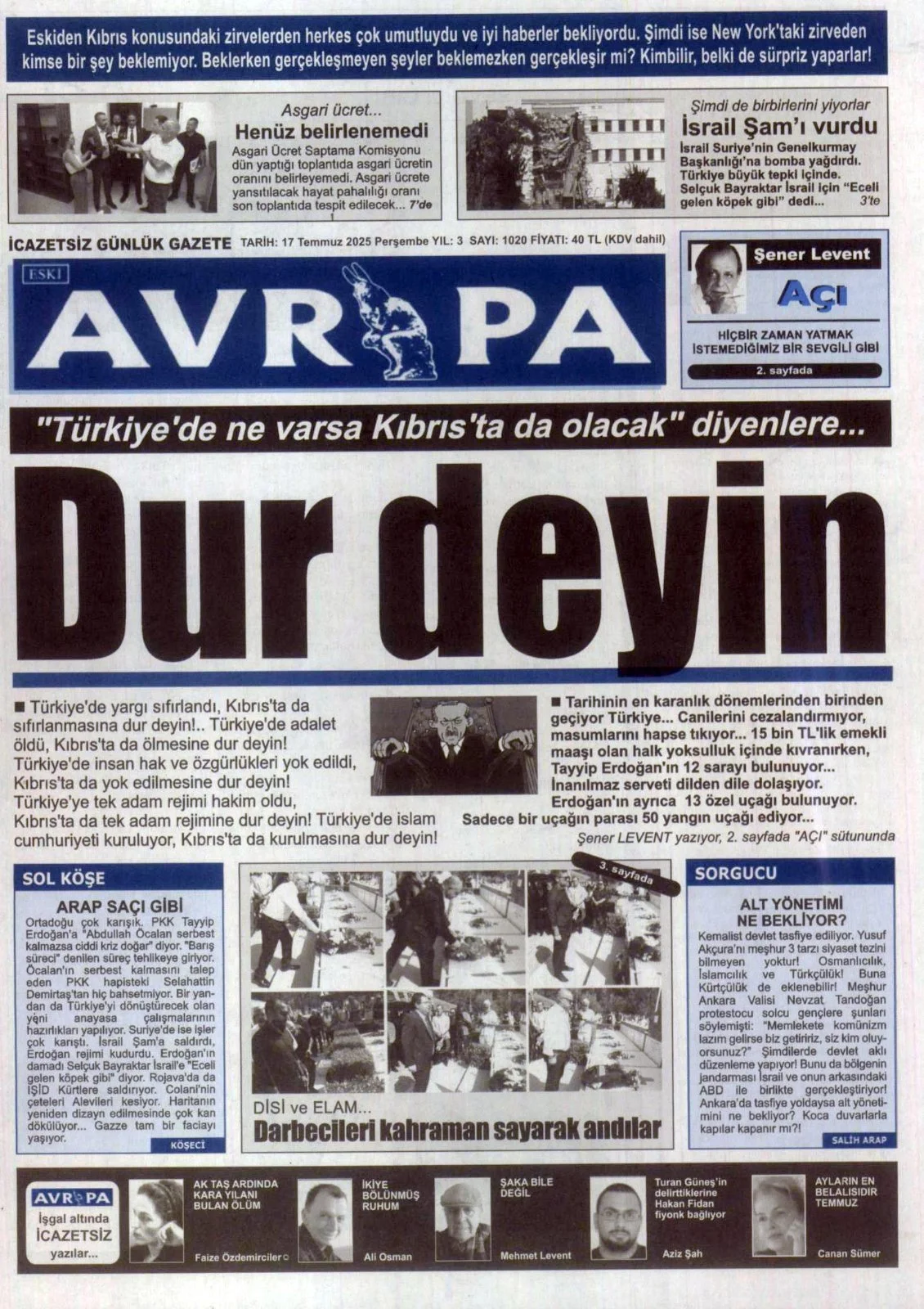 Gazete Manşetleri - 17 Temmuz 2025 KIBRIS 17 Tem Yazan: Feslikan Haber Ajansı KKTC ve Türkiye gazetelerinin manşetleri burada… Ana Sayfa Feslikan Haber Ajansı