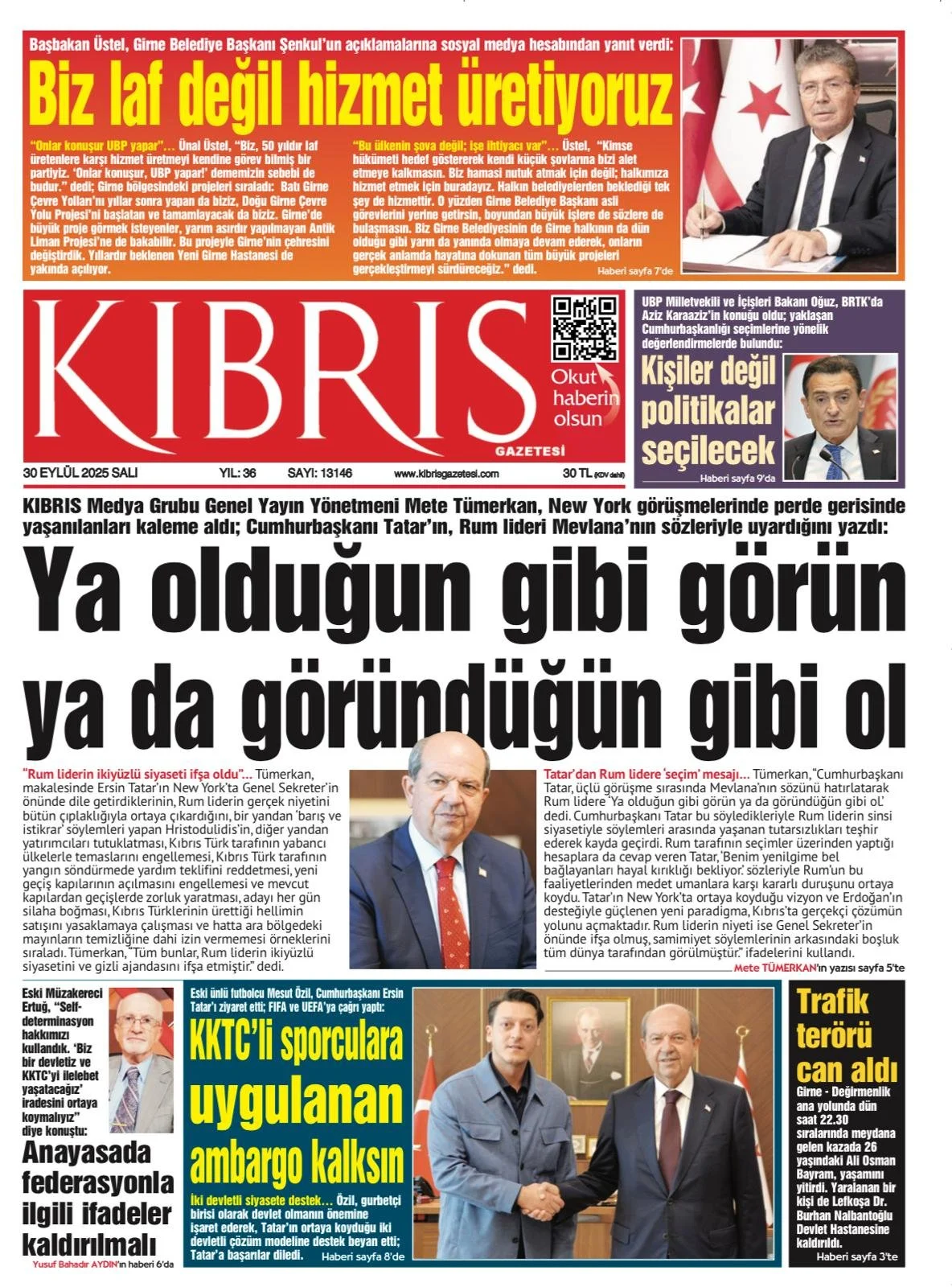 Gazete Manşetleri - 30 Eylül 2025 KIBRIS 30 Eyl Yazan: Feslikan Haber Ajansı KKTC ve Türkiye gazetelerinin manşetleri burada… Ana Sayfa Feslikan Haber Ajansı