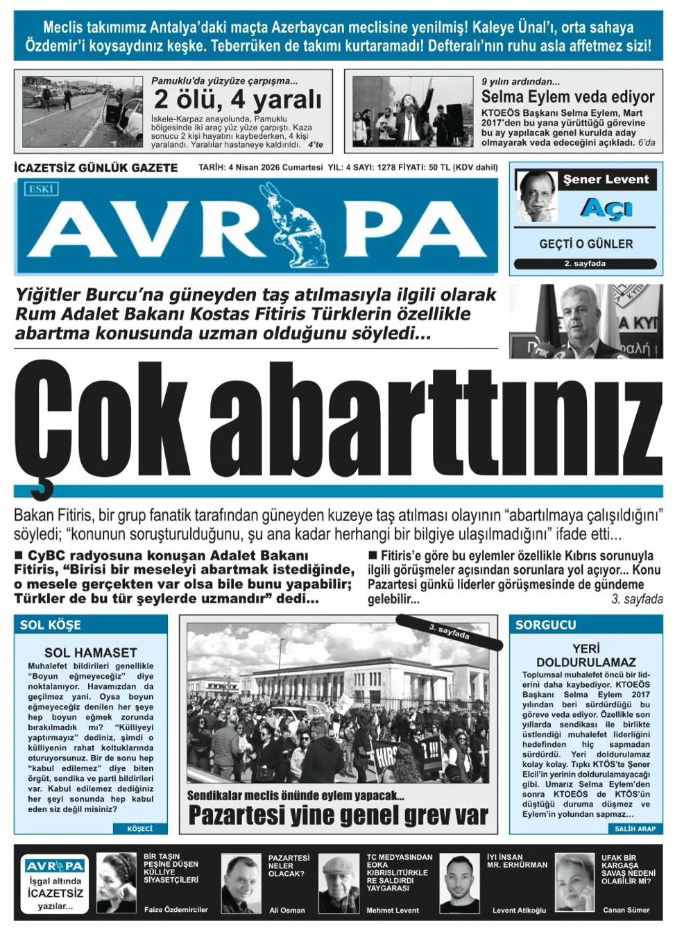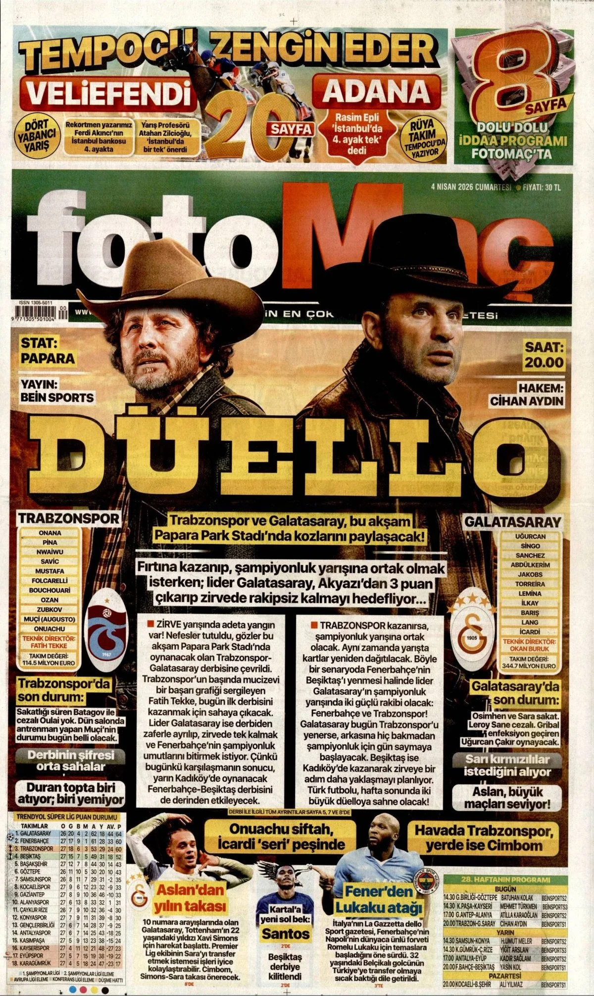 Gazete Manşetleri - 4 Nisan 2026 GAZETE MANŞETLERİ 4 Nis Yazan: Feslikan Haber Ajansı manşetler Feslikan Haber Ajansı