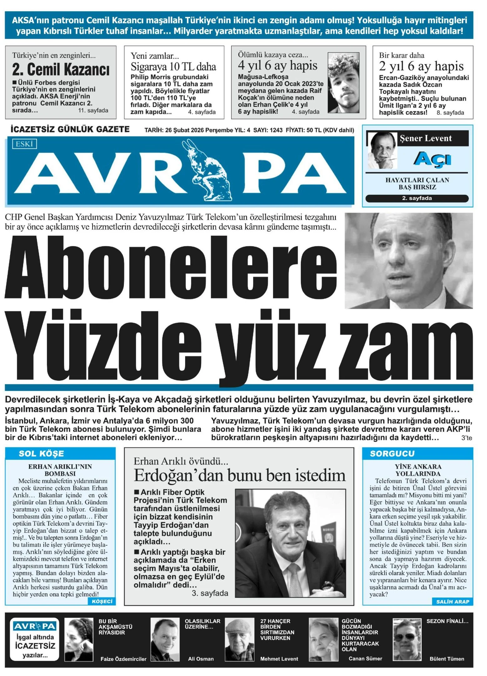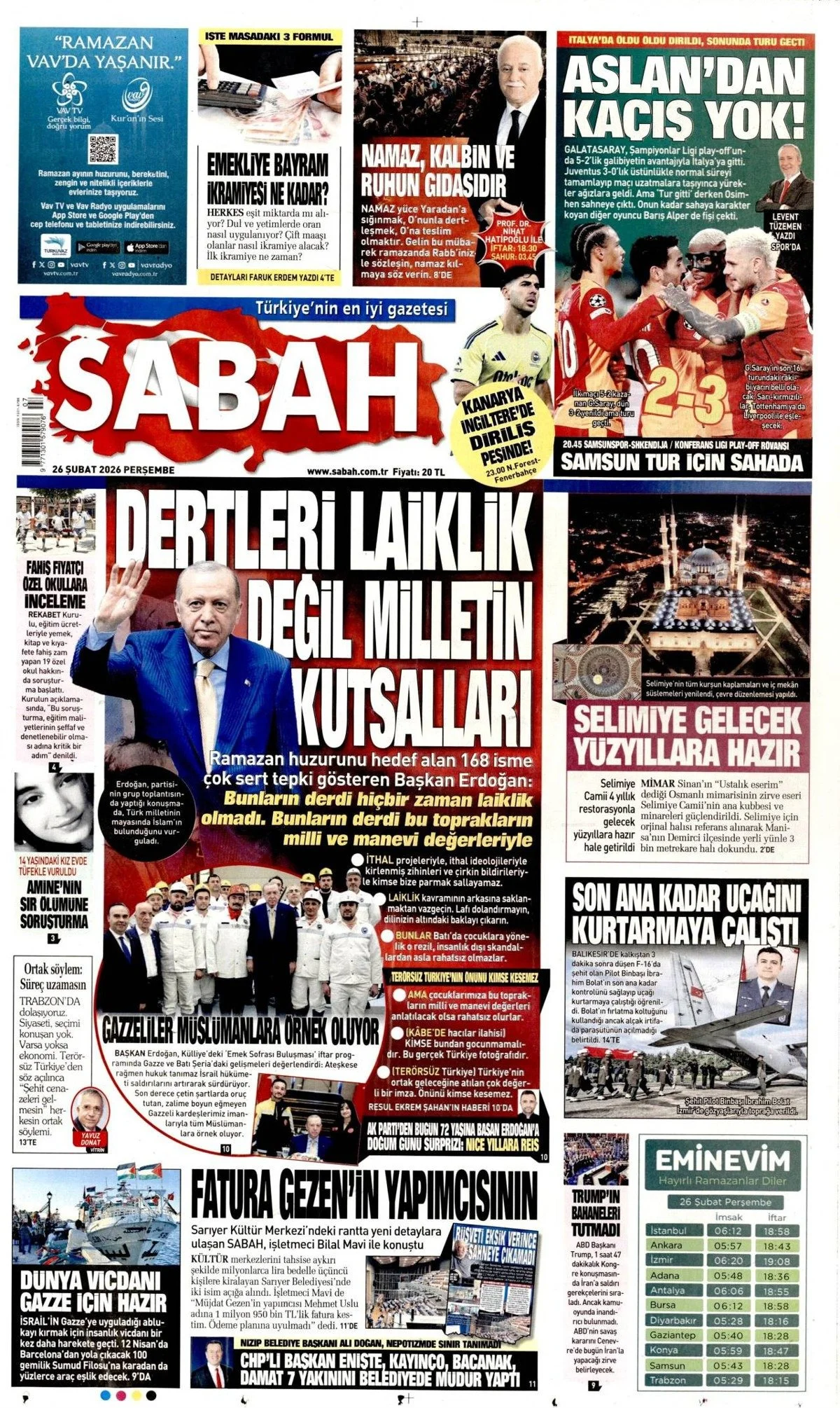 Gazete Manşetleri - 26 Şubat 2026 GAZETE MANŞETLERİ 25 Şub Yazan: Feslikan Haber Ajansı manşetler Feslikan Haber Ajansı