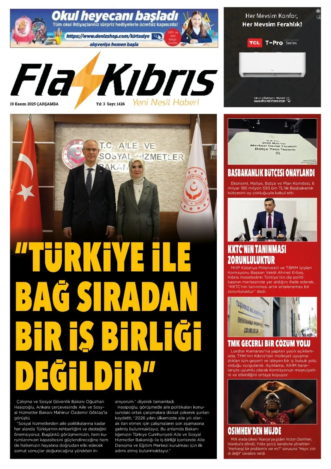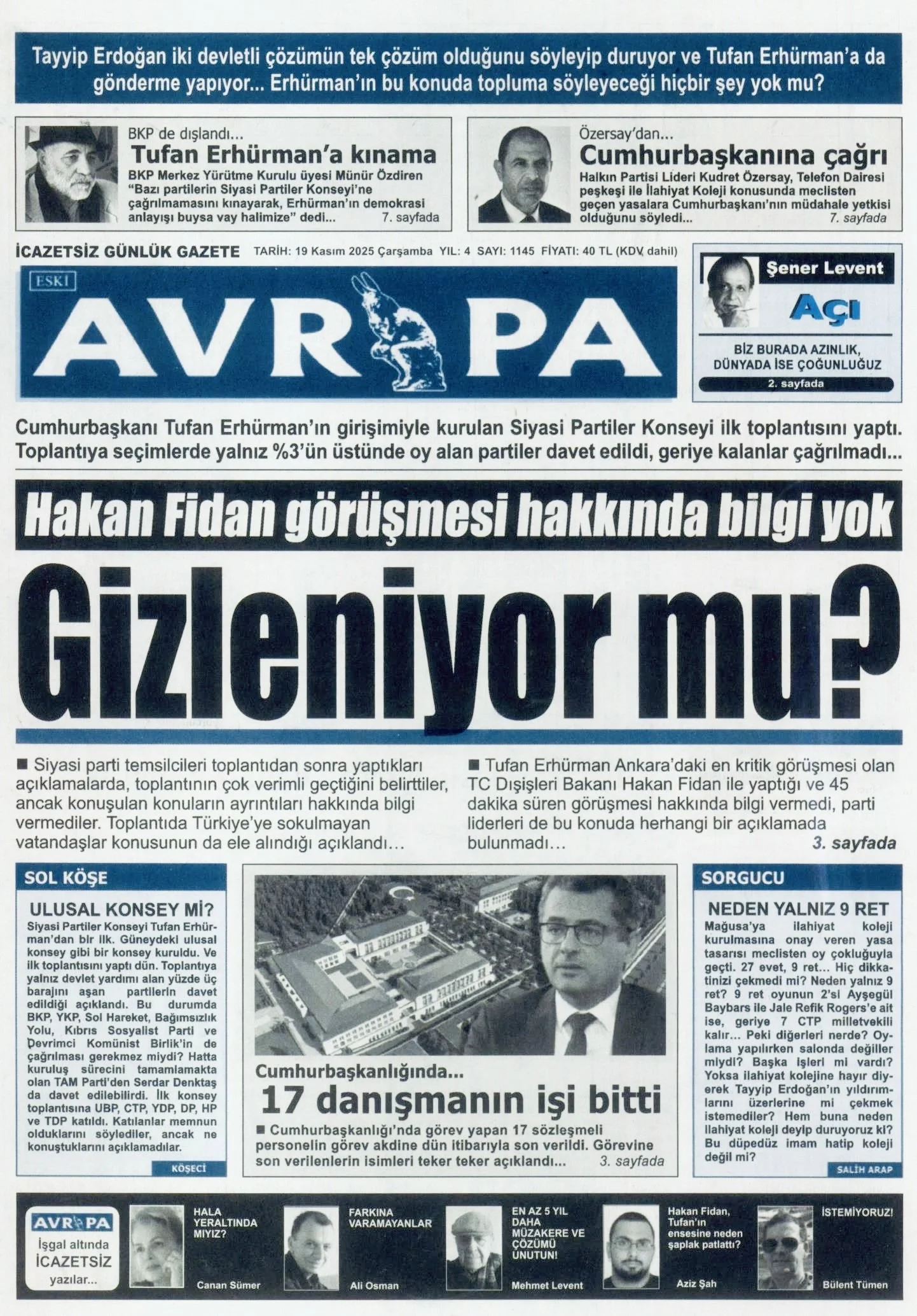 Gazete Manşetleri - 19 Kasım 2025 GAZETE MANŞETLERİ 18 Kas Yazan: Feslikan Haber Ajansı manşetler Feslikan Haber Ajansı