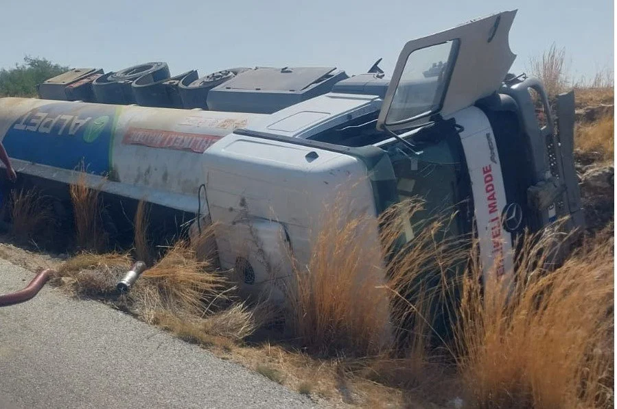 Bu sabah saat 09.00 sıralarında İskele-Ercan Anayolu’nda meydana gelen trafik kazasında, Ahmet Efe Akyol (24) yönetimindeki GK 418 plakalı, mazot yüklü akaryakıt tankeri devrildi.
