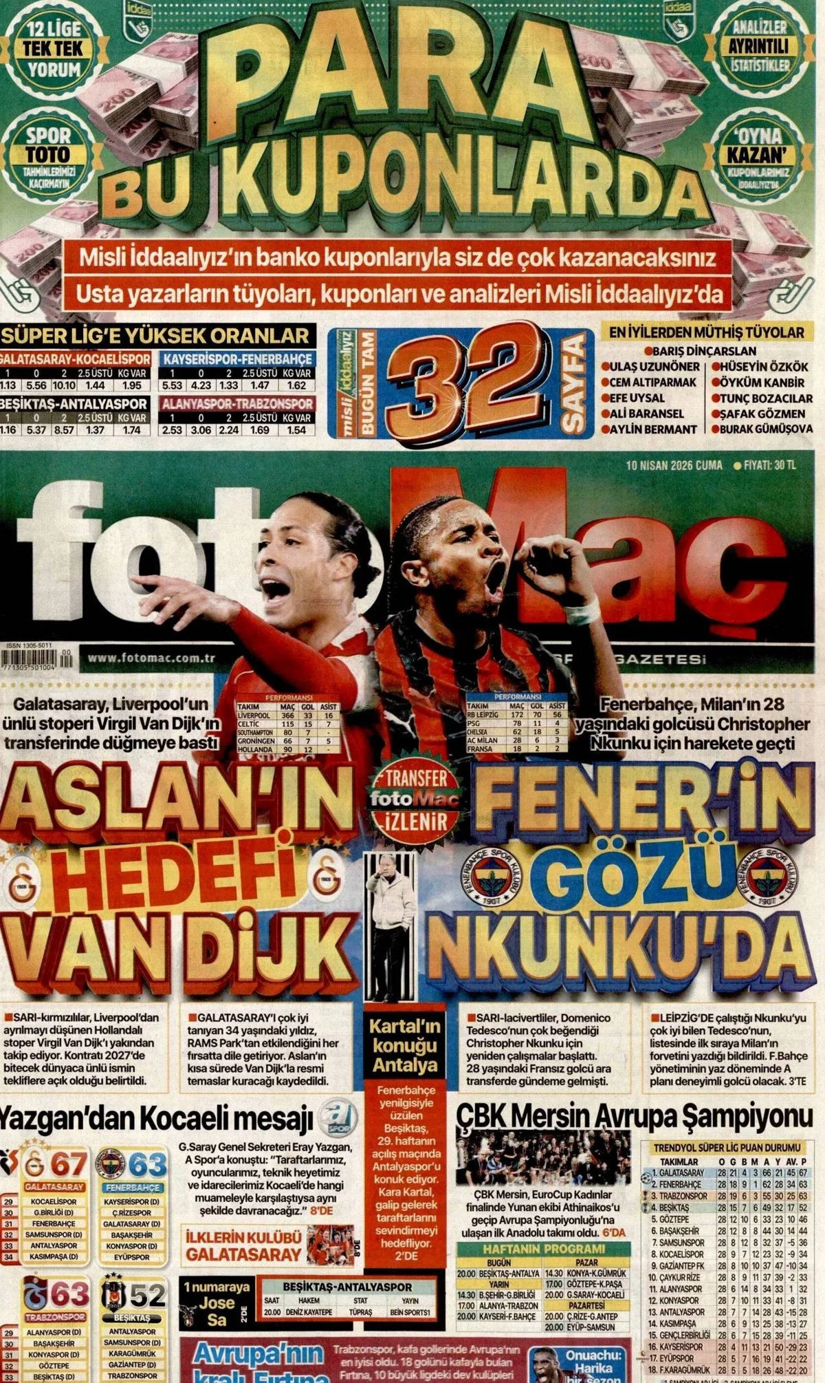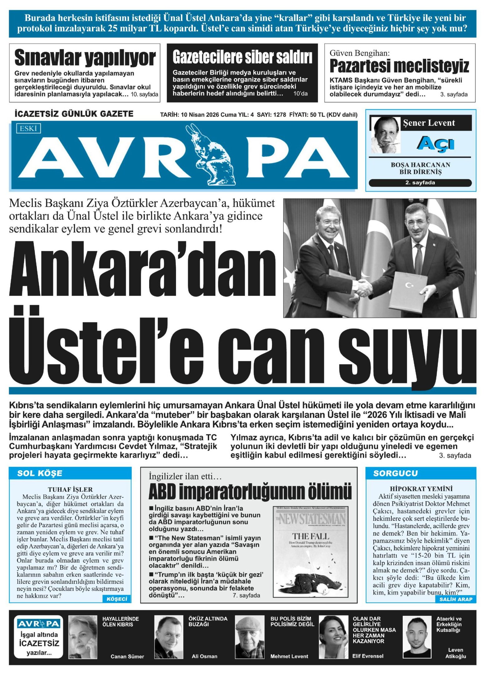 Gazete Manşetleri - 10 Nisan 2026 GAZETE MANŞETLERİ 10 Nis Yazan: Feslikan Haber Ajansı manşetler Feslikan Haber Ajansı
