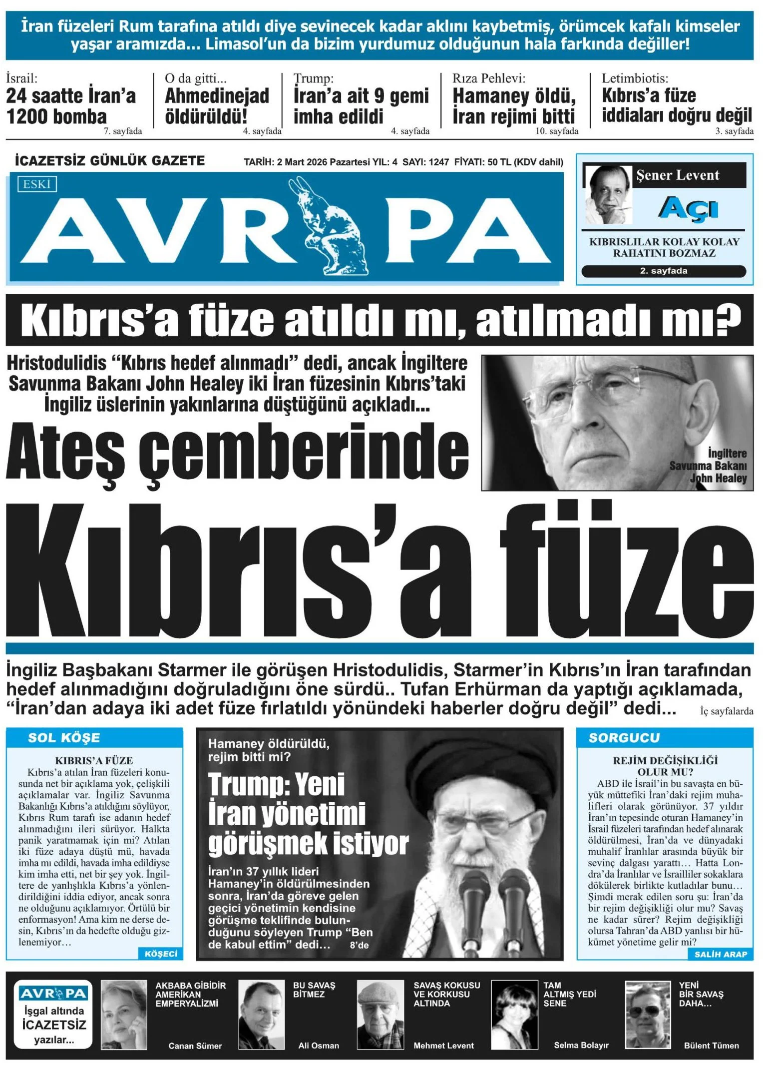 Gazete Manşetleri - 2 Mart 2026 GAZETE MANŞETLERİ 1 Mar Yazan: Feslikan Haber Ajansı manşetler Feslikan Haber Ajansı