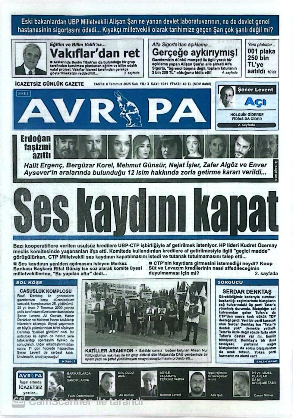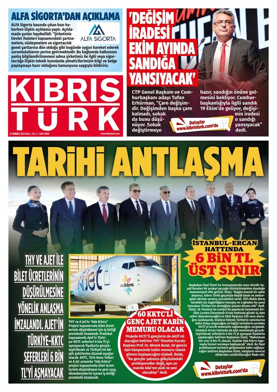 Gazete Manşetleri - 8 Temmuz 2025 KIBRIS 8 Tem Yazan: Feslikan Haber Ajansı KKTC ve Türkiye gazetelerinin bugünkü manşetleri burada… Ana Sayfa Feslikan Haber Ajansı