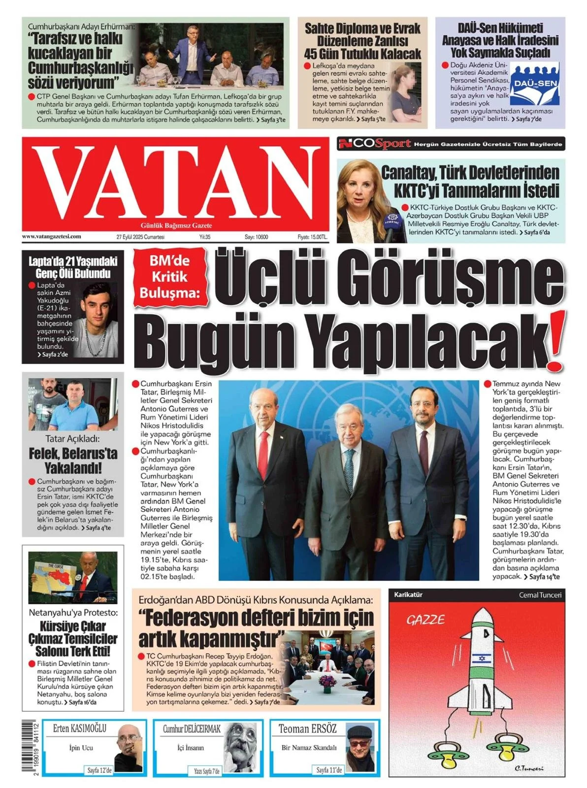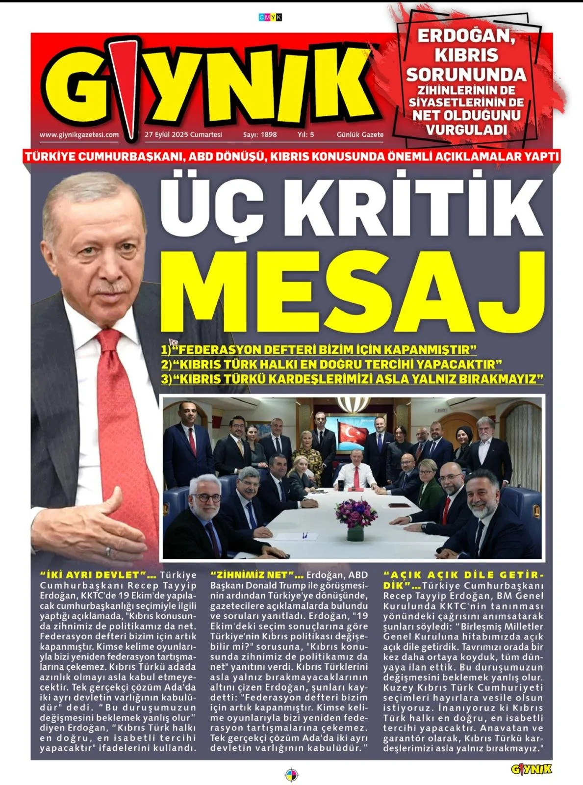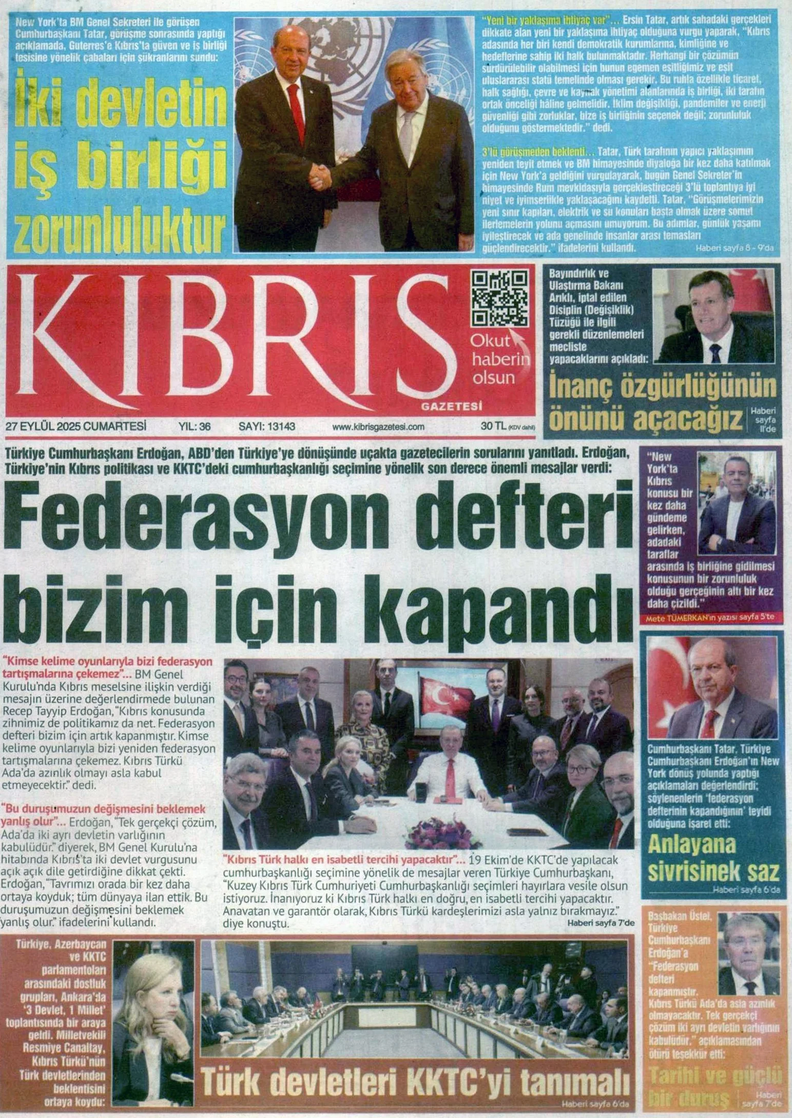 Gazete Manşetleri - 27 Eylül 2025 KIBRIS 27 Eyl Yazan: Feslikan Haber Ajansı KKTC ve Türkiye gazetelerinin manşetleri burada… Ana Sayfa Feslikan Haber Ajansı