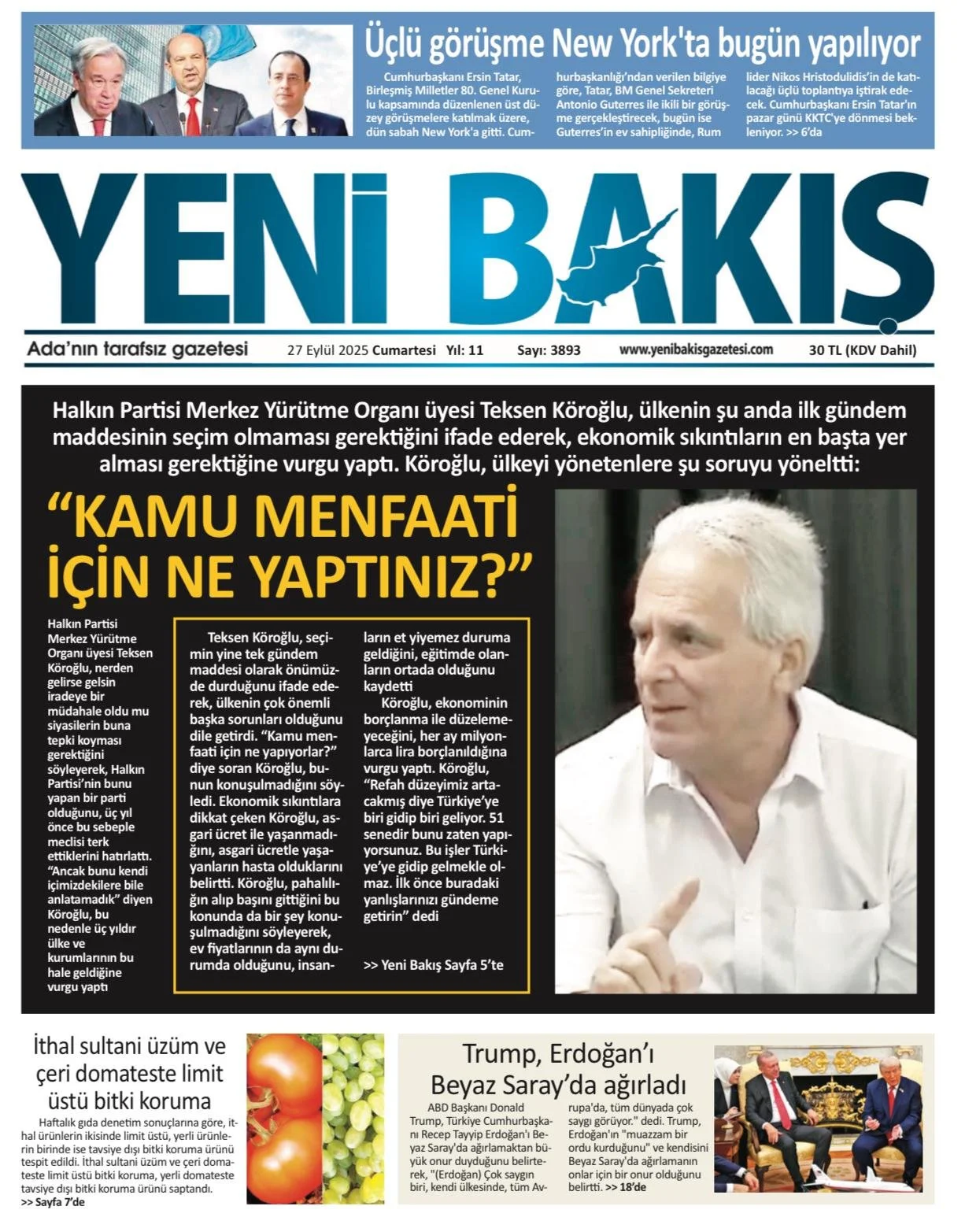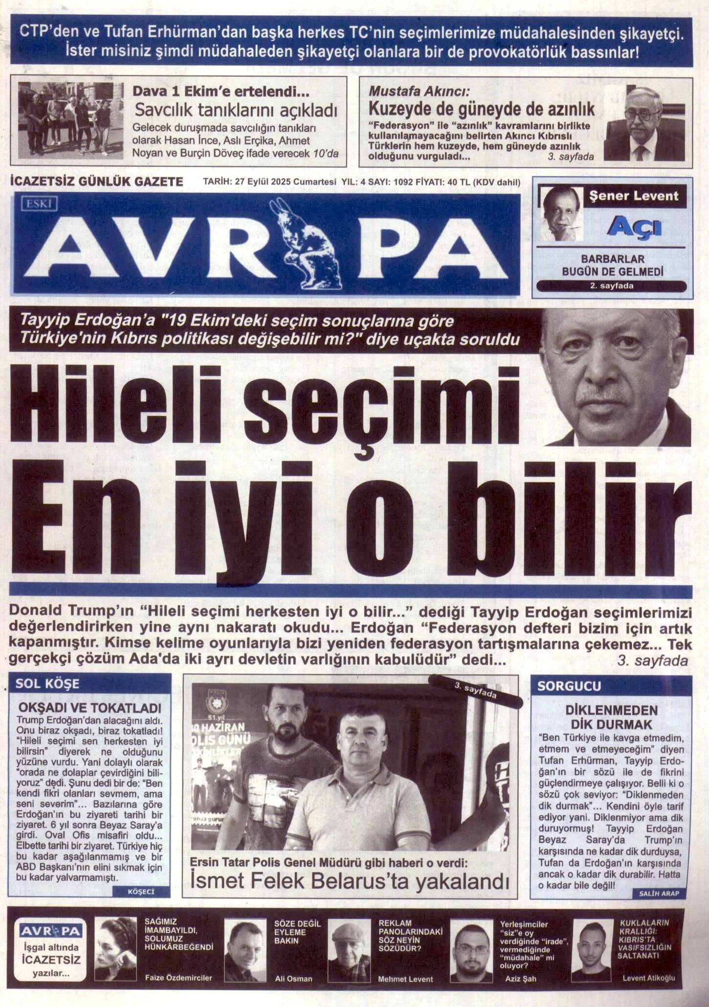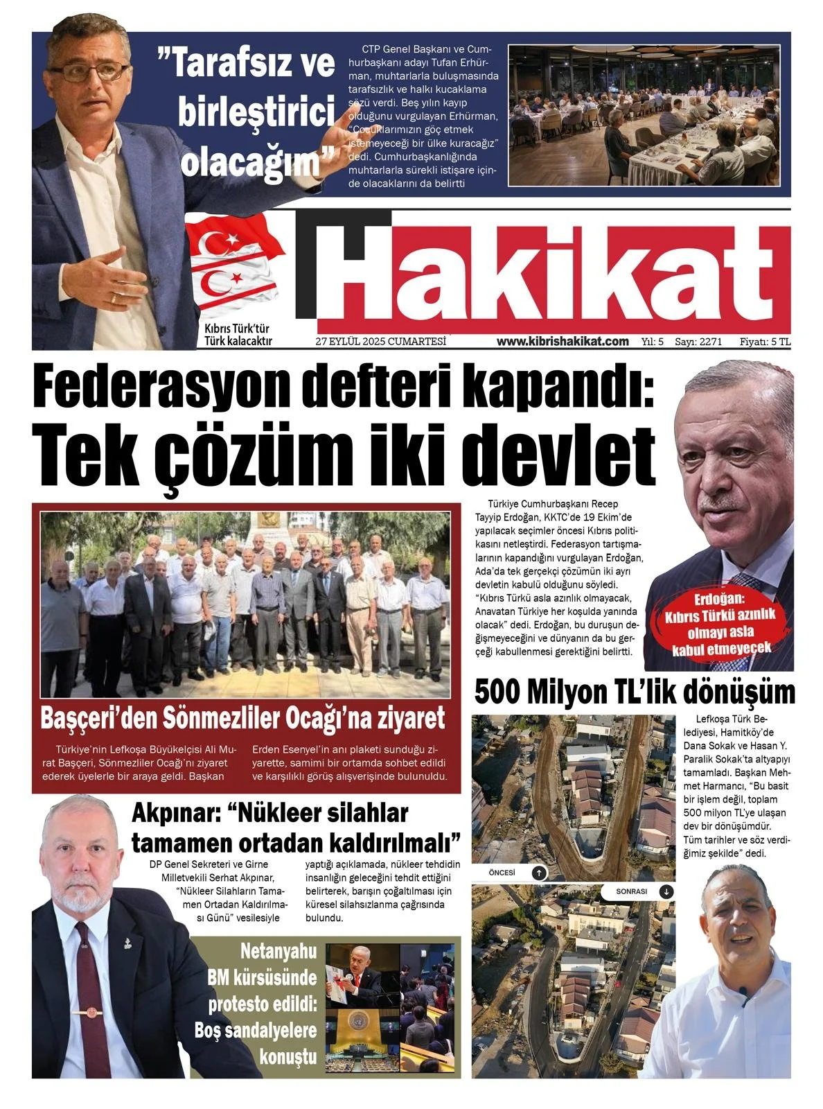 Gazete Manşetleri - 27 Eylül 2025 KIBRIS 27 Eyl Yazan: Feslikan Haber Ajansı KKTC ve Türkiye gazetelerinin manşetleri burada… Ana Sayfa Feslikan Haber Ajansı