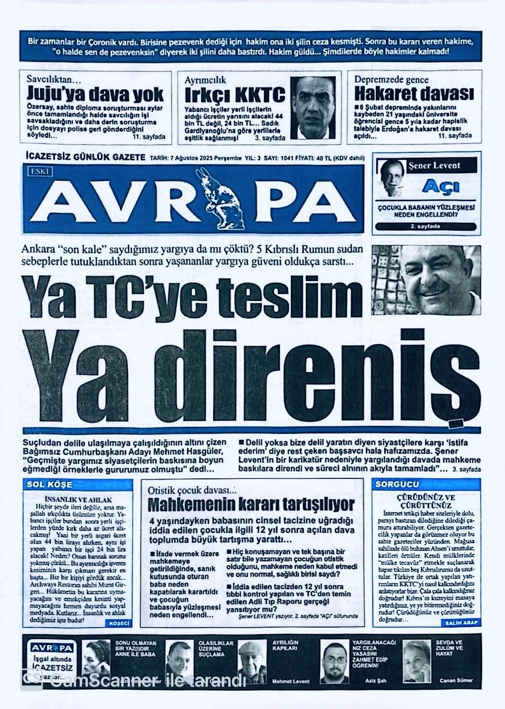 Gazete Manşetleri - 7 Ağustos 2025 KIBRIS 7 Ağu Yazan: Feslikan Haber Ajansı KKTC ve Türkiye gazetelerinin manşetleri burada… Ana Sayfa Feslikan Haber Ajansı