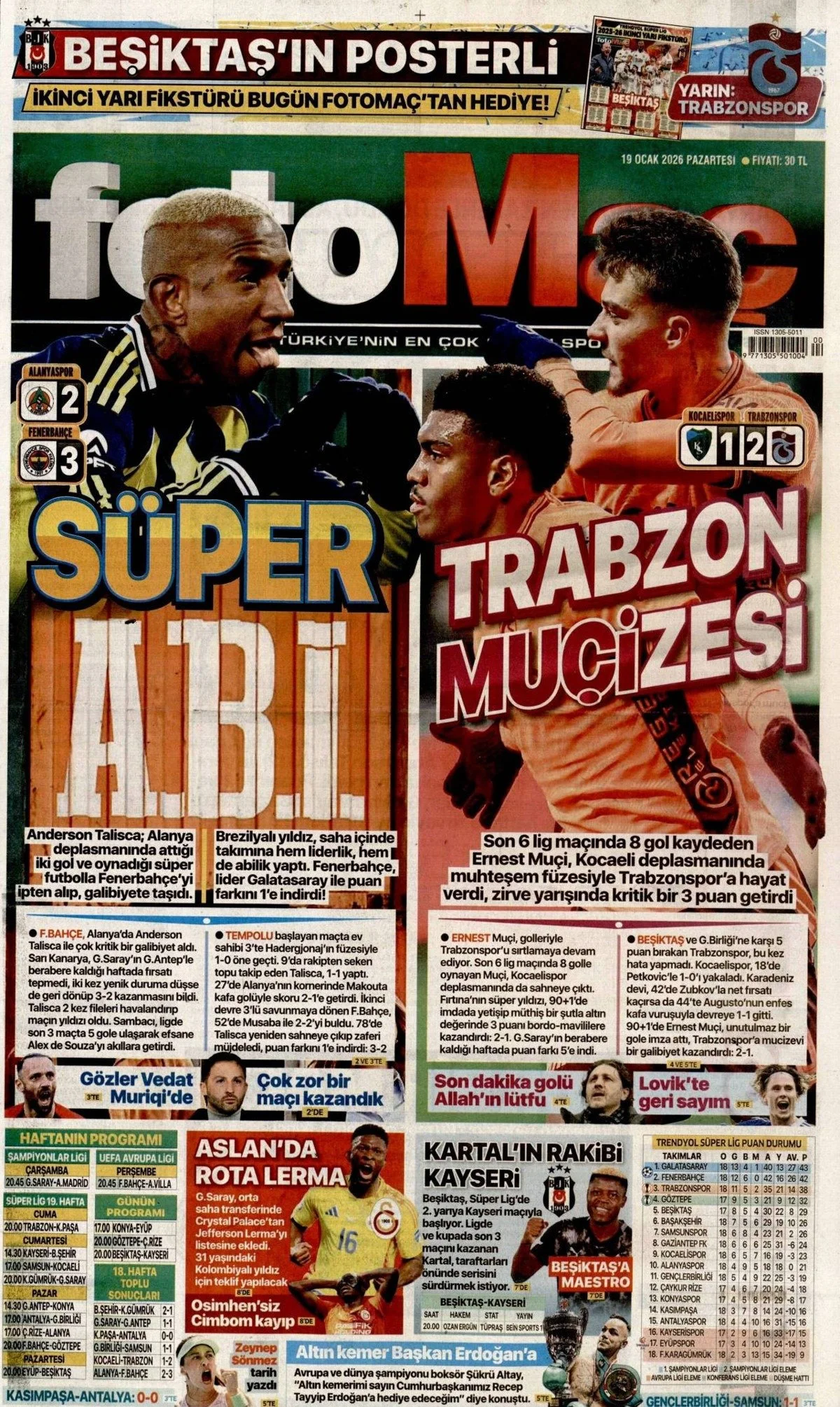 Gazete Manşetleri - 19 Ocak 2026 GAZETE MANŞETLERİ 19 Oca Yazan: Feslikan Haber Ajansı manşetler Feslikan Haber Ajansı