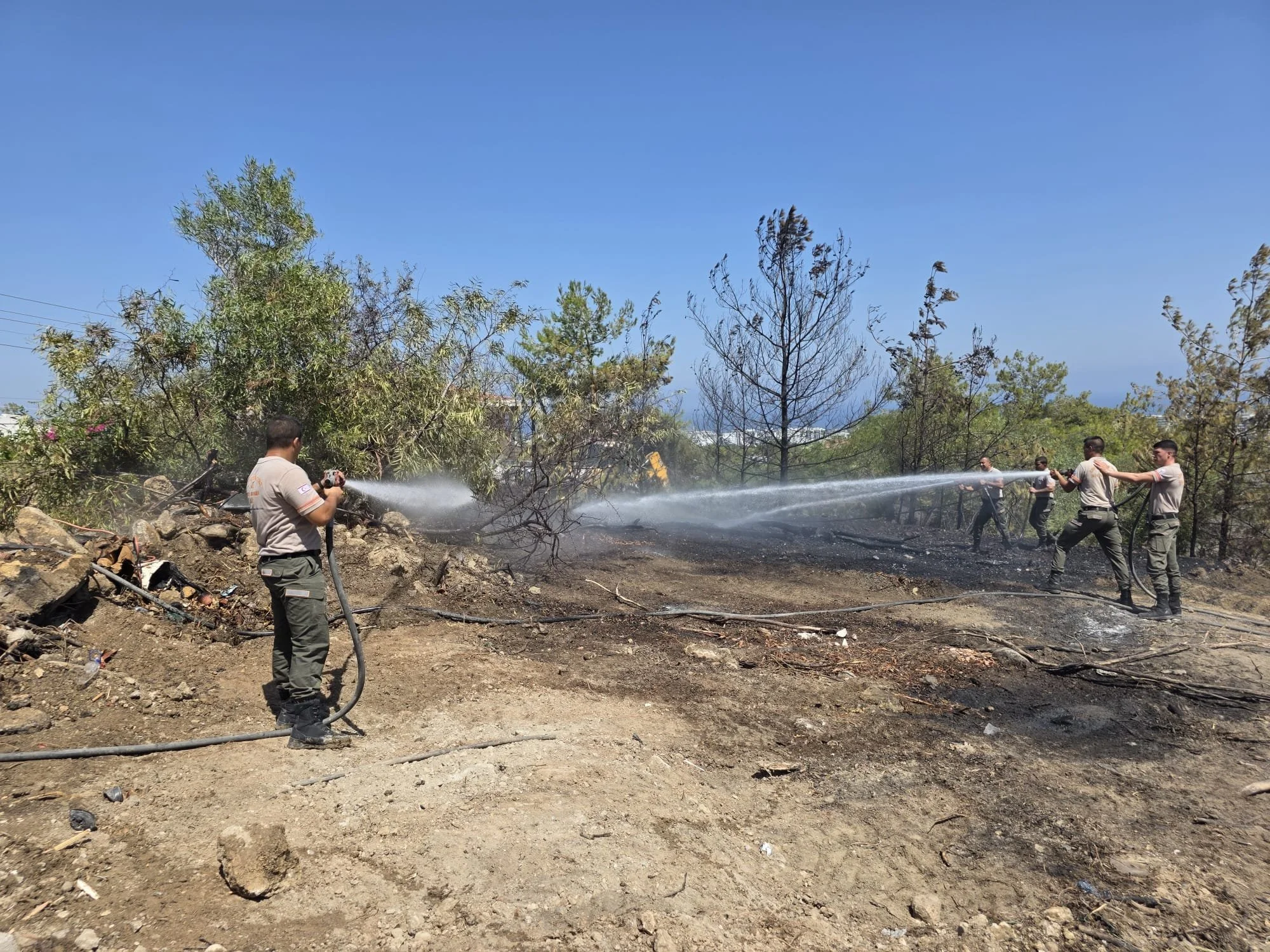 Yangına; Polis İtfaiye ekipleri, Orman Dairesi, Sivil Savunma, Girne Belediyesi zabıta ekipleri ile askeri personel ve iş makineleri müdahale etti. Alevler, dere yatağı içerisindeki makilik alan ile çam ağaçlarının yanı sıra çöp ve molozları da etkiledi.