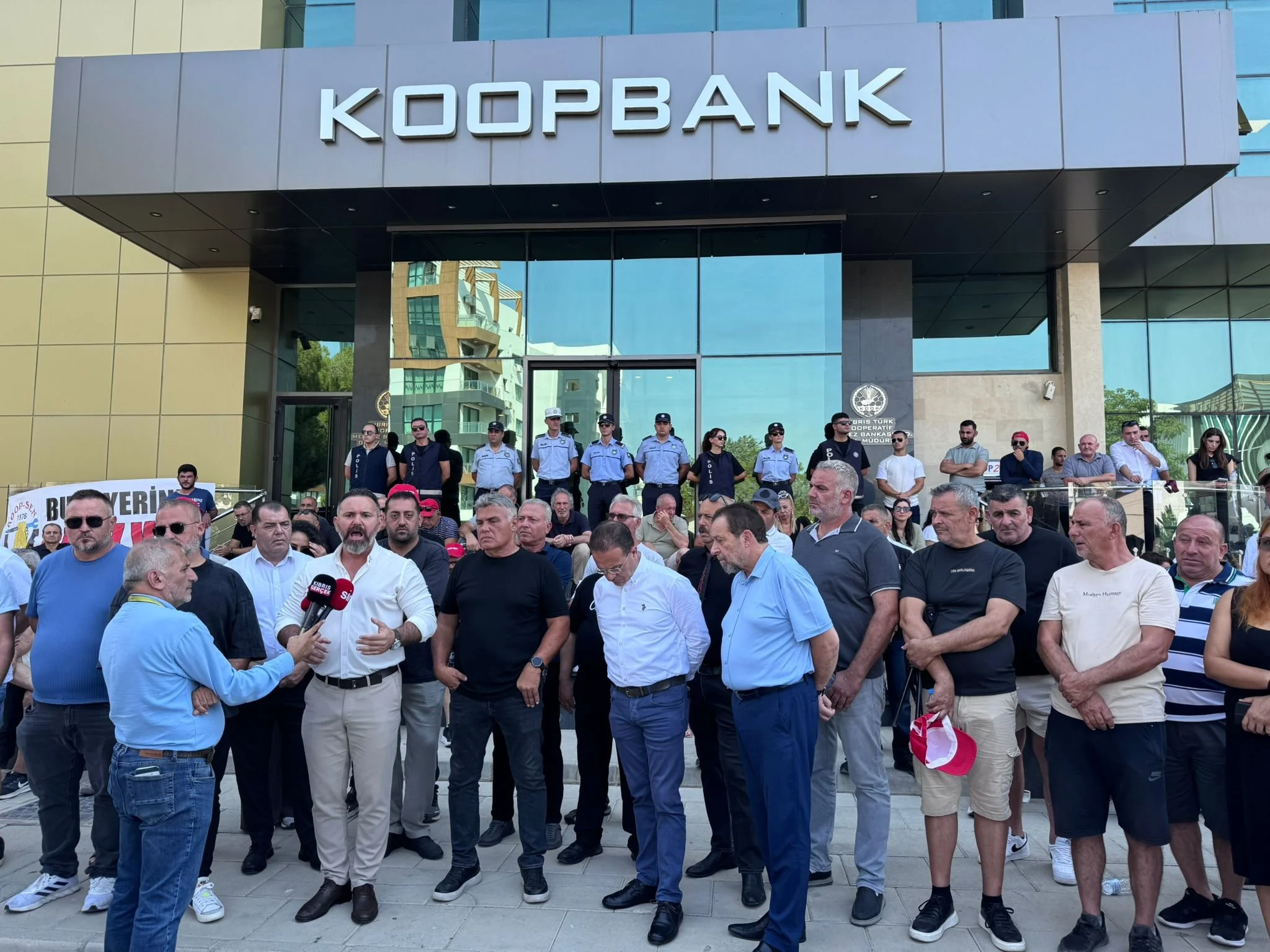 Kıbrıs Türk Amme Memurları Sendikası Başkanı (KTAMS) Güven Bengihan da “kurumlarımıza, kooperatiflerimize, iştiraklerine sahip çıkmak için buradayız” diyerek, Kooperatif Merkez Bankası’nın 1984’ten hükümet tarafından atanan kayyumlar tarafından yönetildiğini iddia etti.