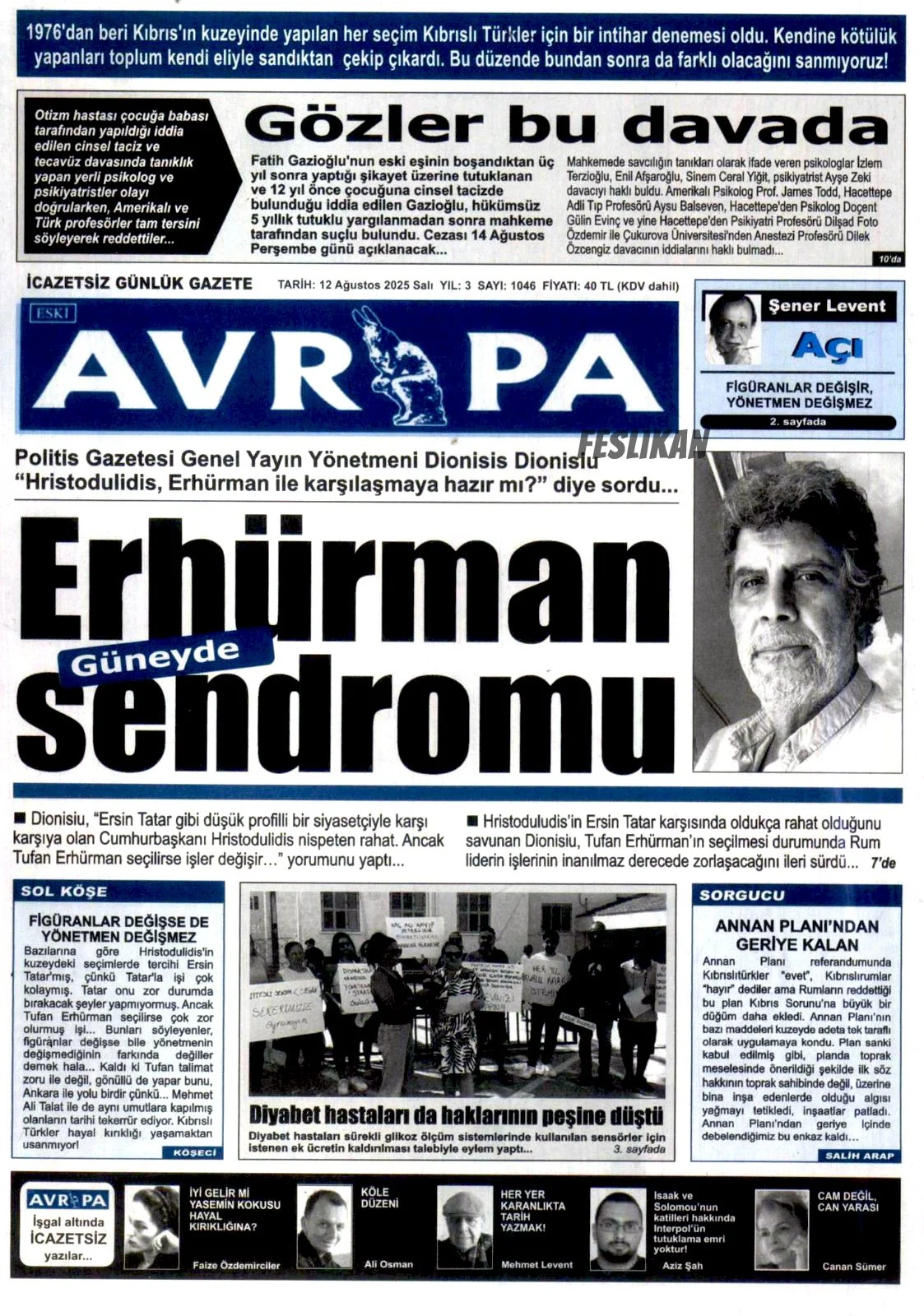 Gazete Manşetleri - 12 Ağustos 2025 KIBRIS 12 Ağu Yazan: Feslikan Haber Ajansı KKTC ve Türkiye gazetelerinin manşetleri burada… Ana Sayfa Feslikan Haber Ajansı
