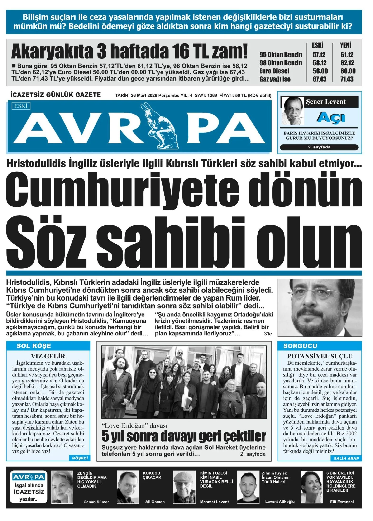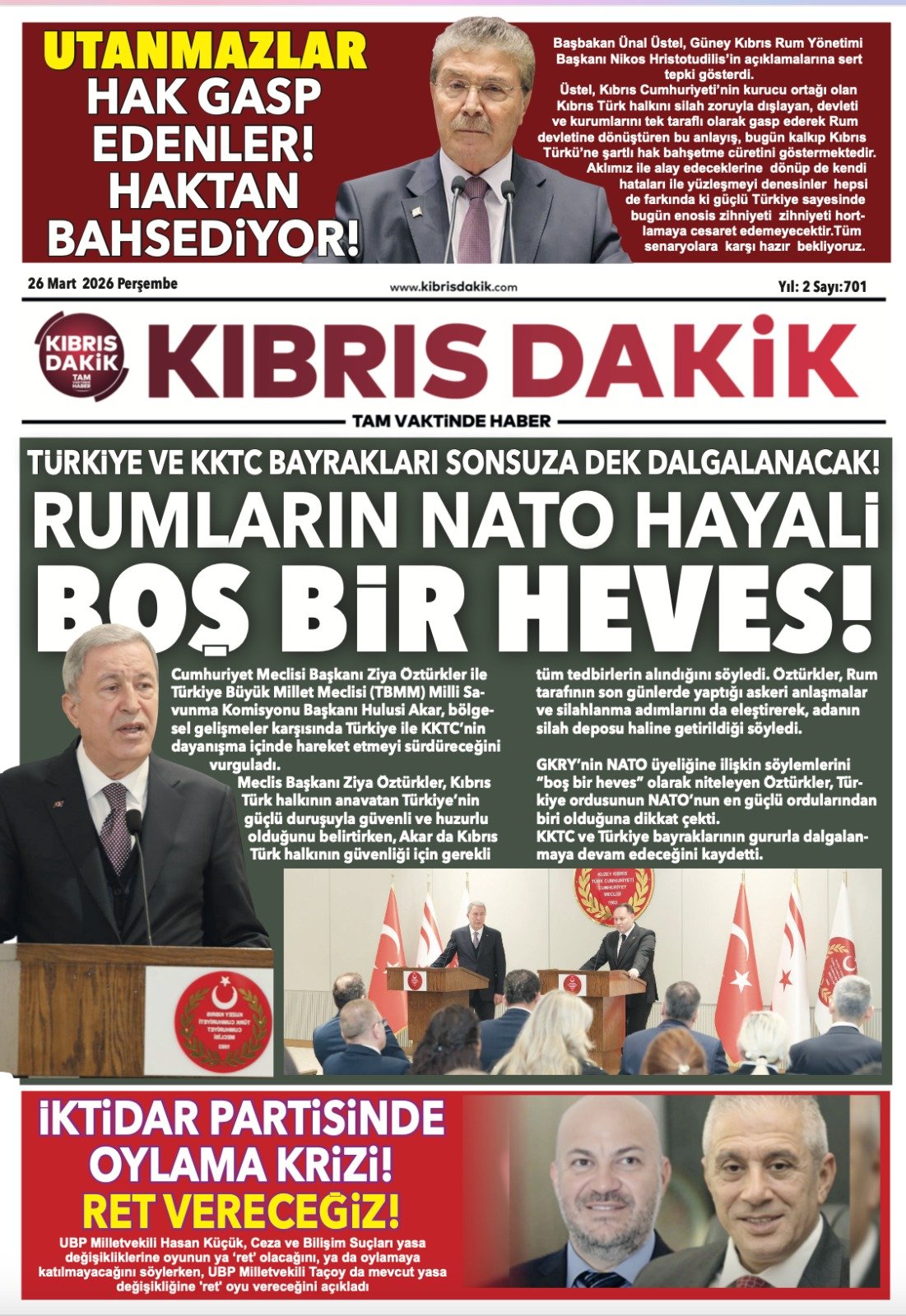 Gazete Manşetleri - 26 Mart 2026 GAZETE MANŞETLERİ 26 Mar Yazan: Feslikan Haber Ajansı manşetler Feslikan Haber Ajansı