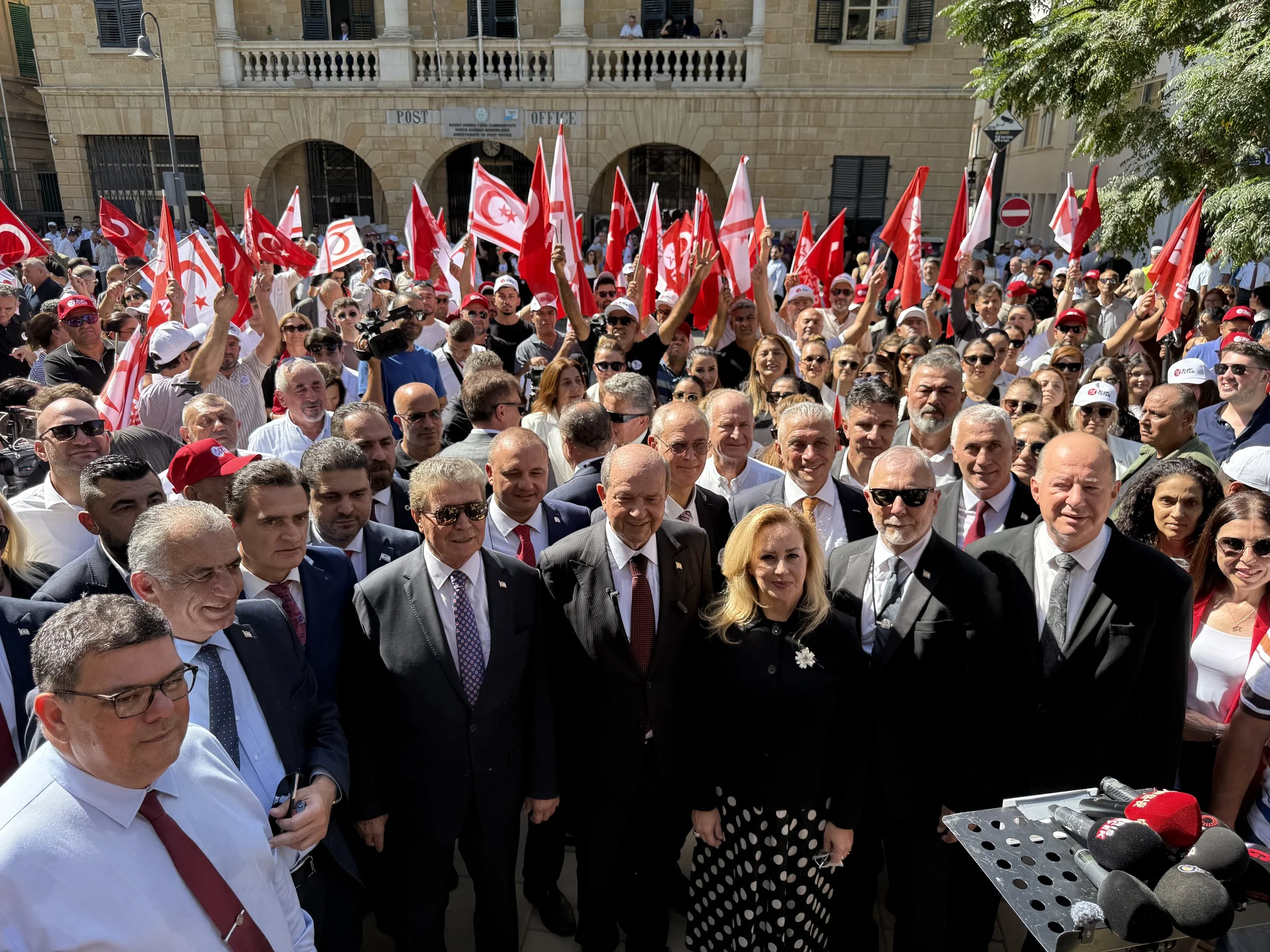 Cumhurbaşkanı Tatar, buradan başlayan kortej yürüyüşü sonrası Mahkemeler önünde basın toplantısı düzenledi.