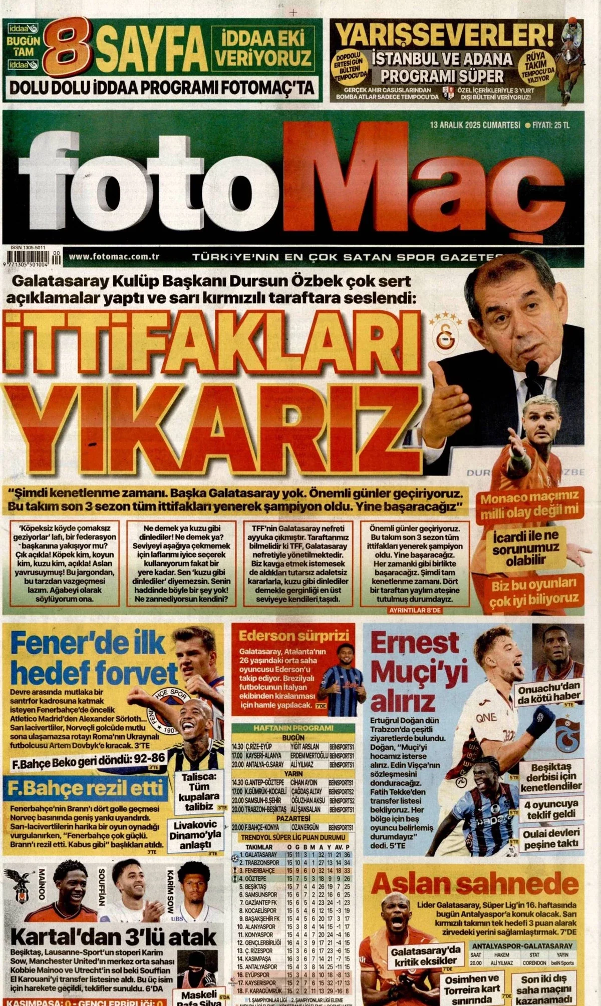 Gazete Manşetleri - 13 Aralık 2025 GAZETE MANŞETLERİ 13 Ara Yazan: Feslikan Haber Ajansı manşetler Feslikan Haber Ajansı