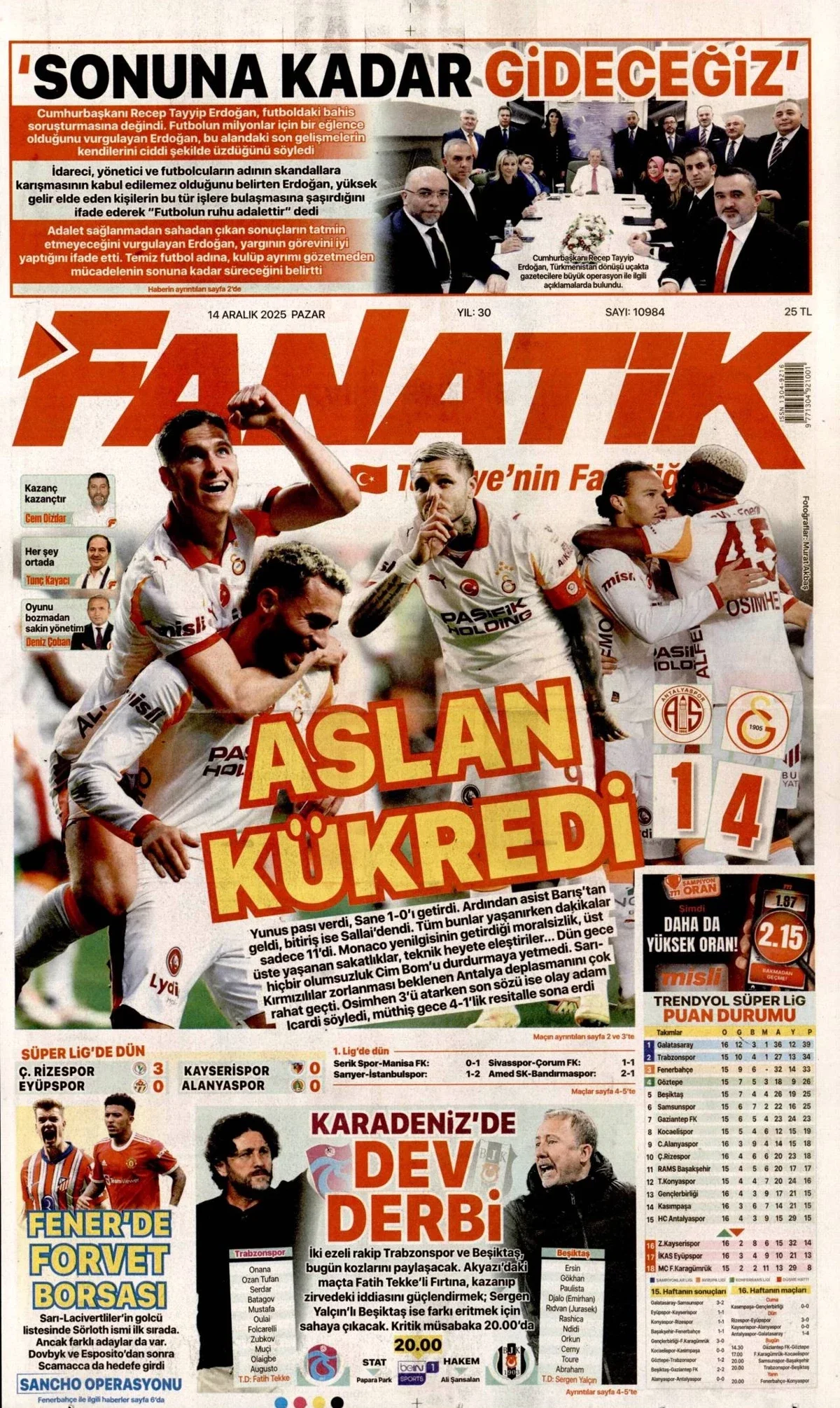 Gazete Manşetleri - 14 Aralık 2025 GAZETE MANŞETLERİ 14 Ara Yazan: Feslikan Haber Ajansı manşetler Feslikan Haber Ajansı