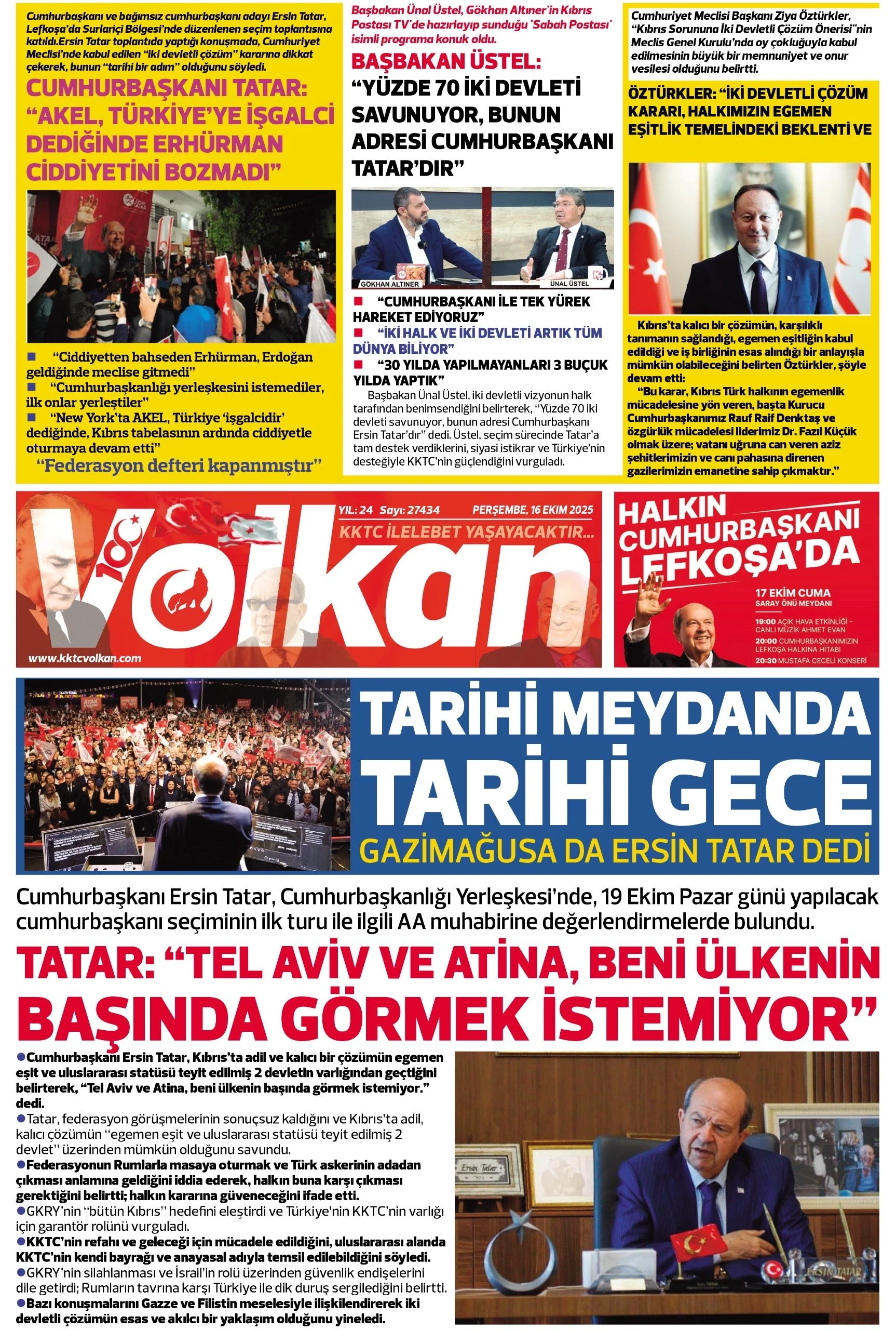 Gazete Manşetleri - 16 Ekim 2025 GAZETE MANŞETLERİ 16 Eki Yazan: Feslikan Haber Ajansı KKTC ve Türkiye gazetelerinin manşetleri burada… manşetler Feslikan Haber Ajansı
