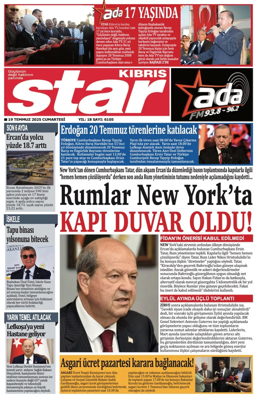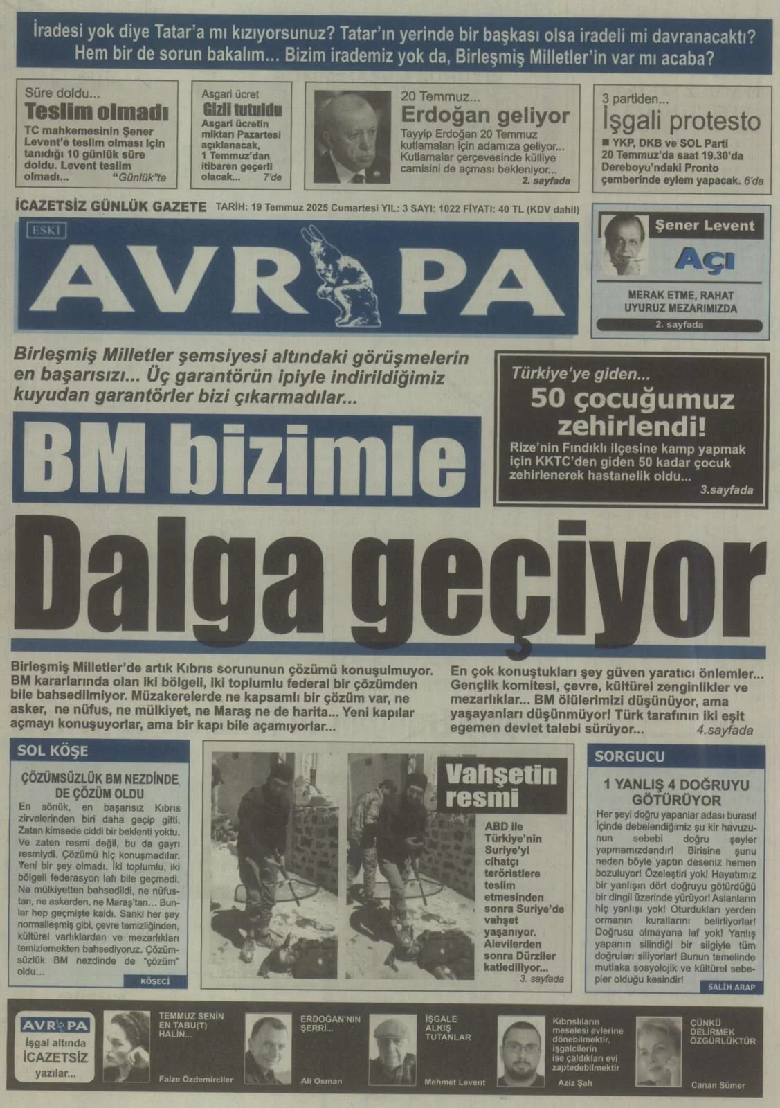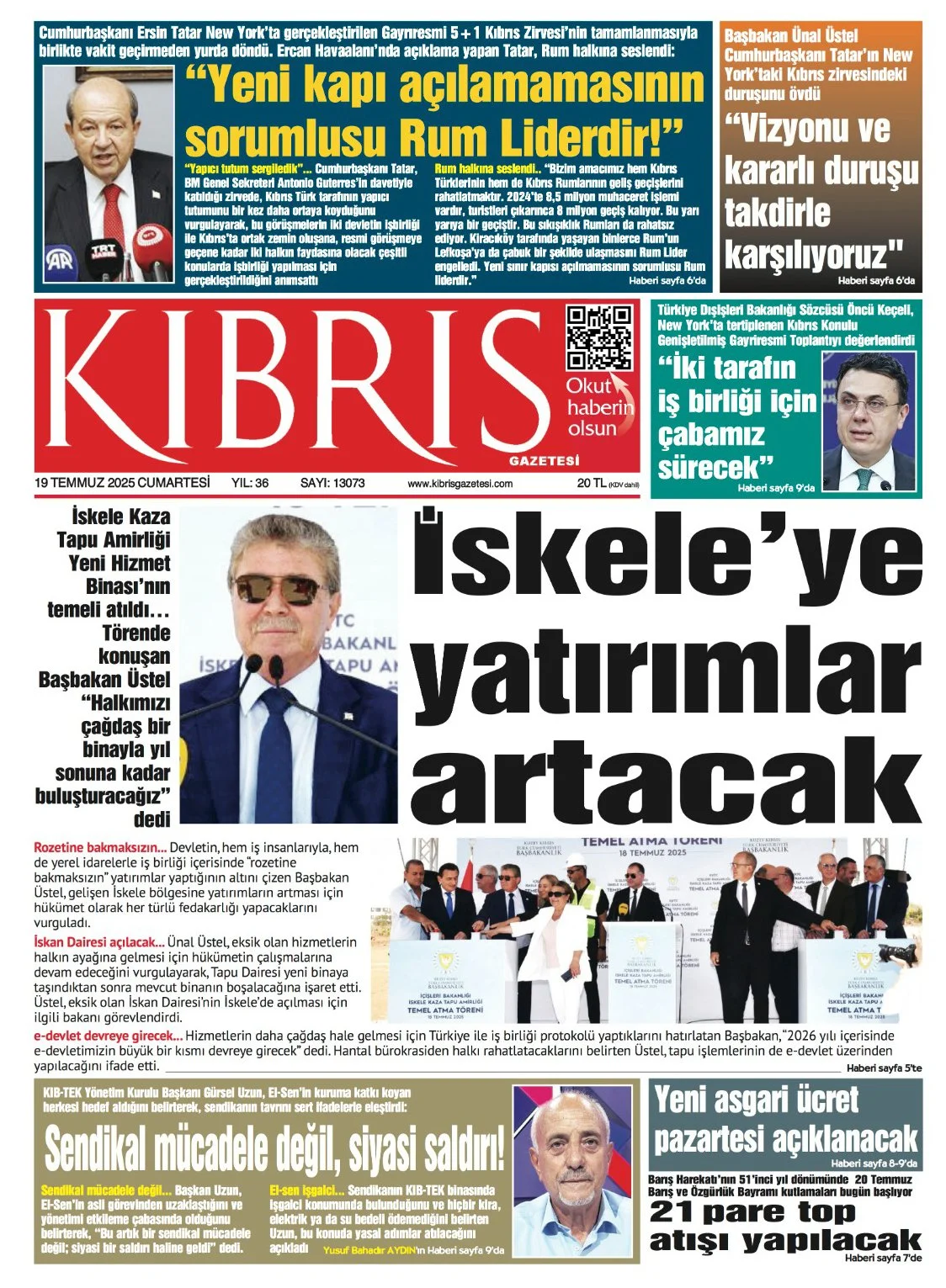 Gazete Manşetleri - 19 Temmuz 2025 KIBRIS 19 Tem Yazan: Feslikan Haber Ajansı KKTC ve Türkiye gazetelerinin manşetleri burada… Ana Sayfa Feslikan Haber Ajansı
