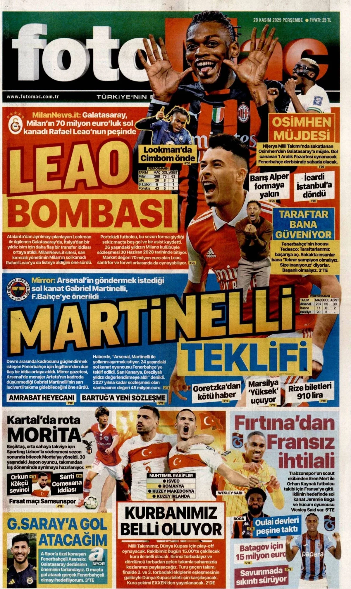 Gazete Manşetleri - 20 Kasım 2025 GAZETE MANŞETLERİ 20 Kas Yazan: Feslikan Haber Ajansı manşetler Feslikan Haber Ajansı