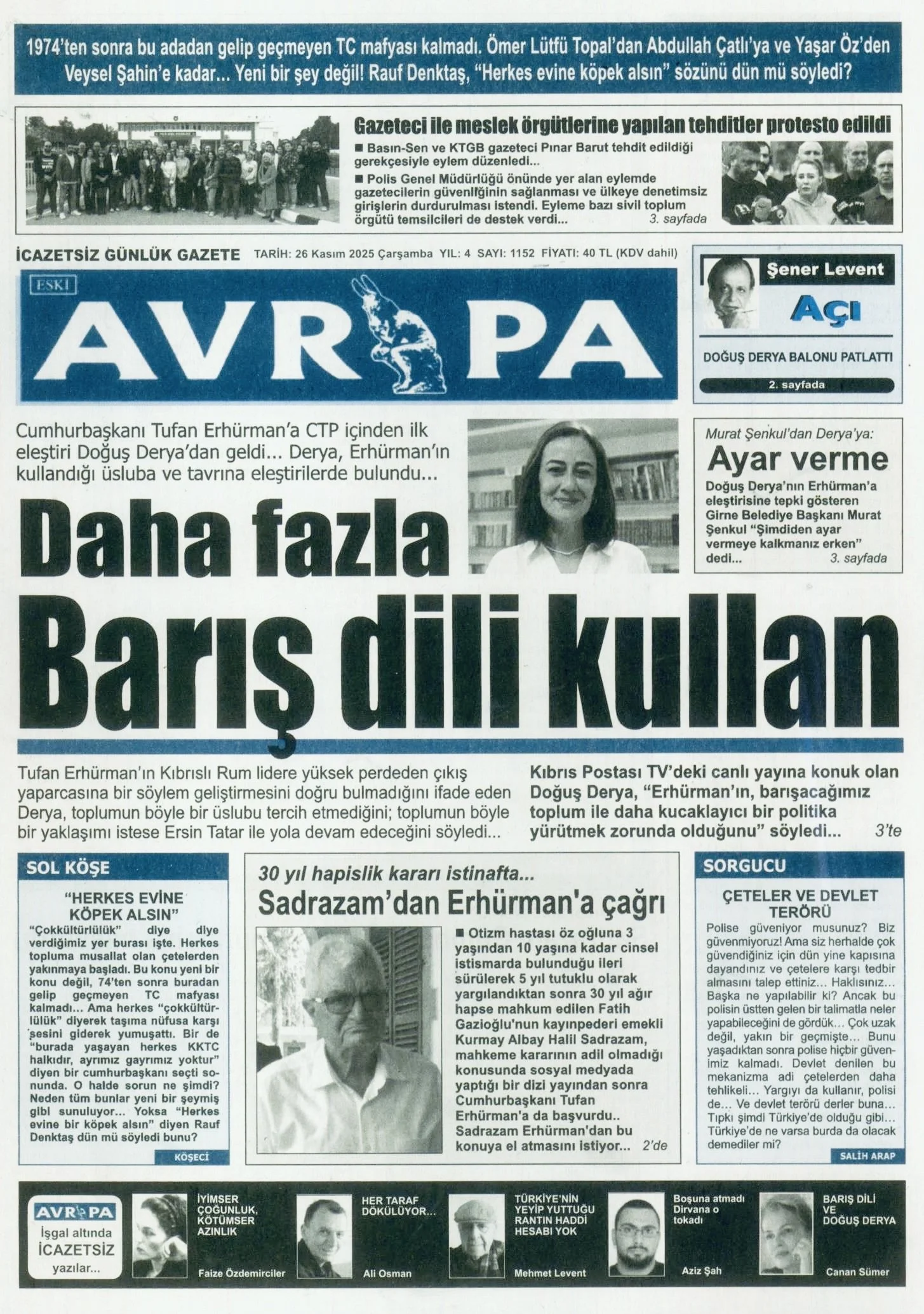 Gazete Manşetleri - 26 Kasım 2025 GAZETE MANŞETLERİ 26 Kas Yazan: Feslikan Haber Ajansı manşetler Feslikan Haber Ajansı