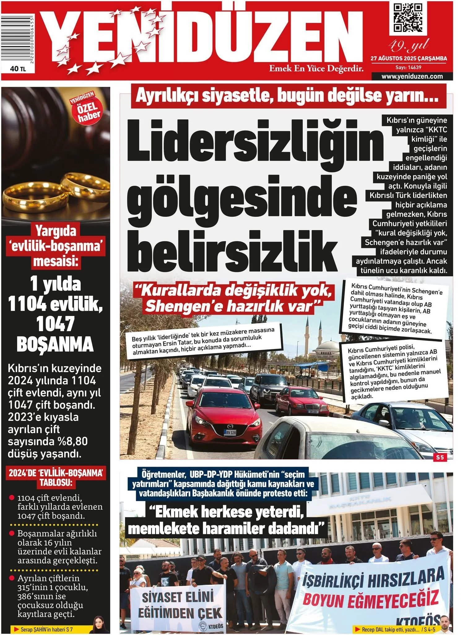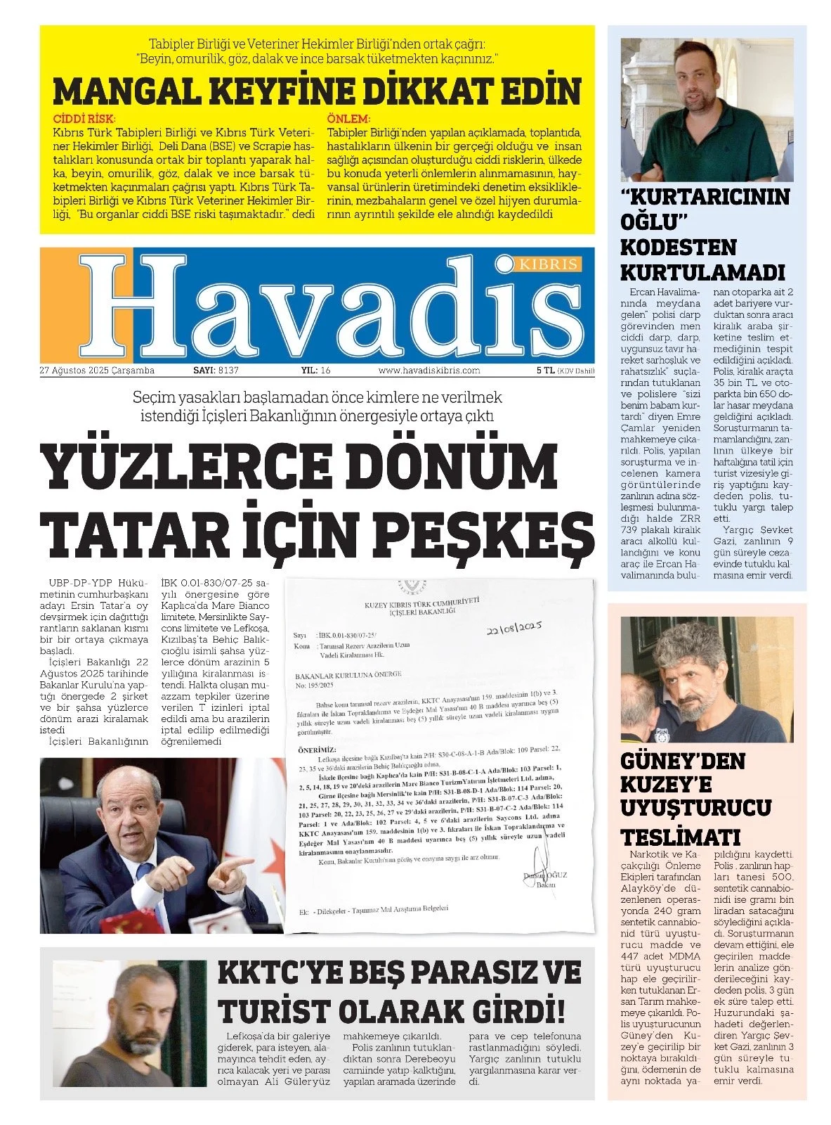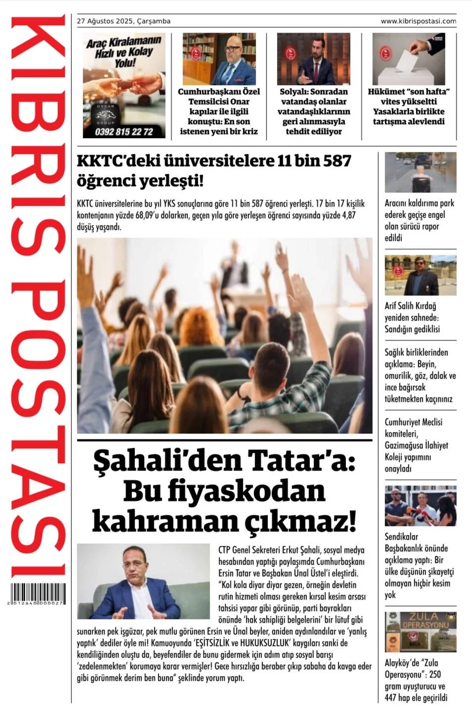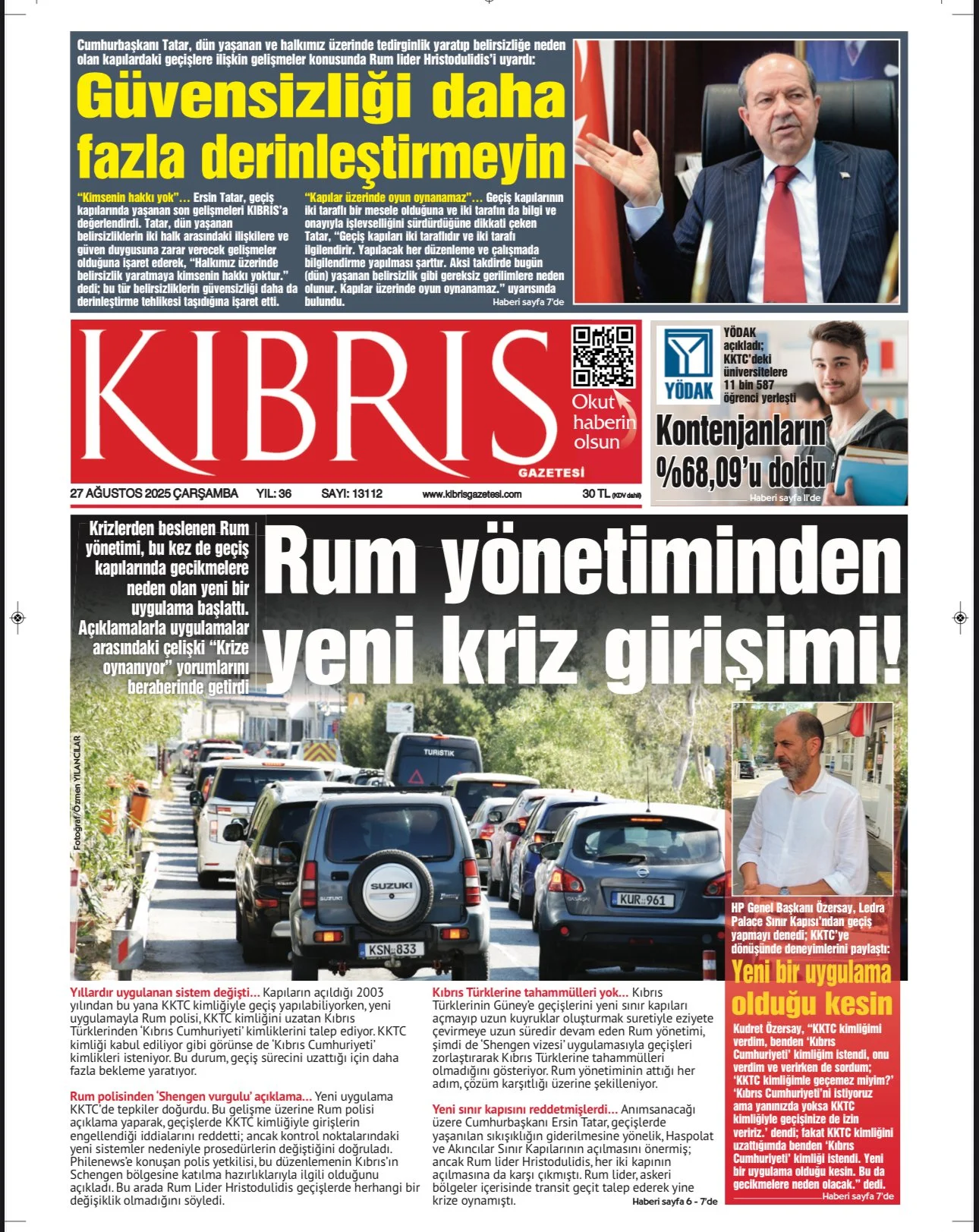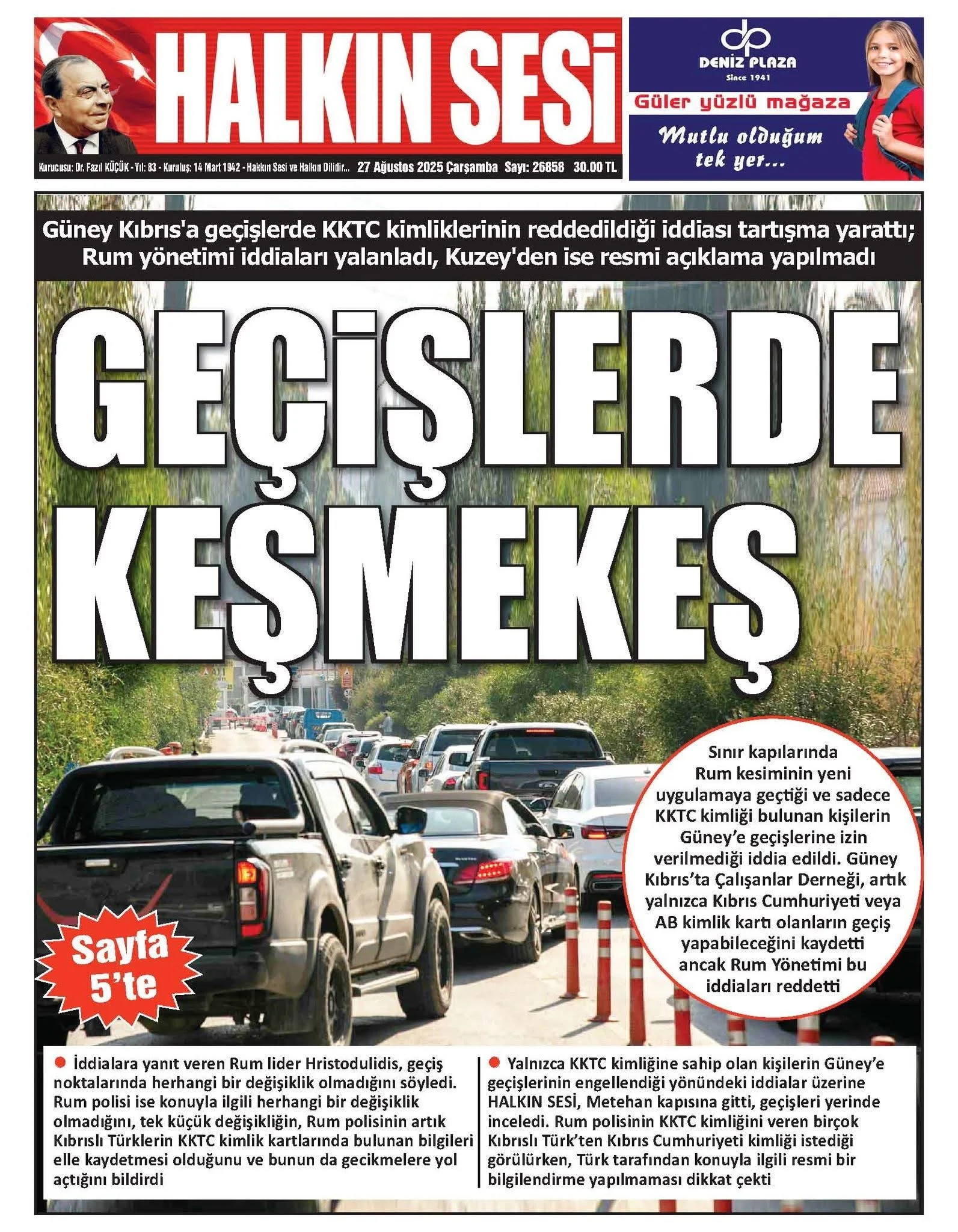 Gazete Manşetleri - 27 Ağustos 2025 KIBRIS 27 Ağu Yazan: Feslikan Haber Ajansı KKTC ve Türkiye gazetelerinin manşetleri burada… Ana Sayfa Feslikan Haber Ajansı
