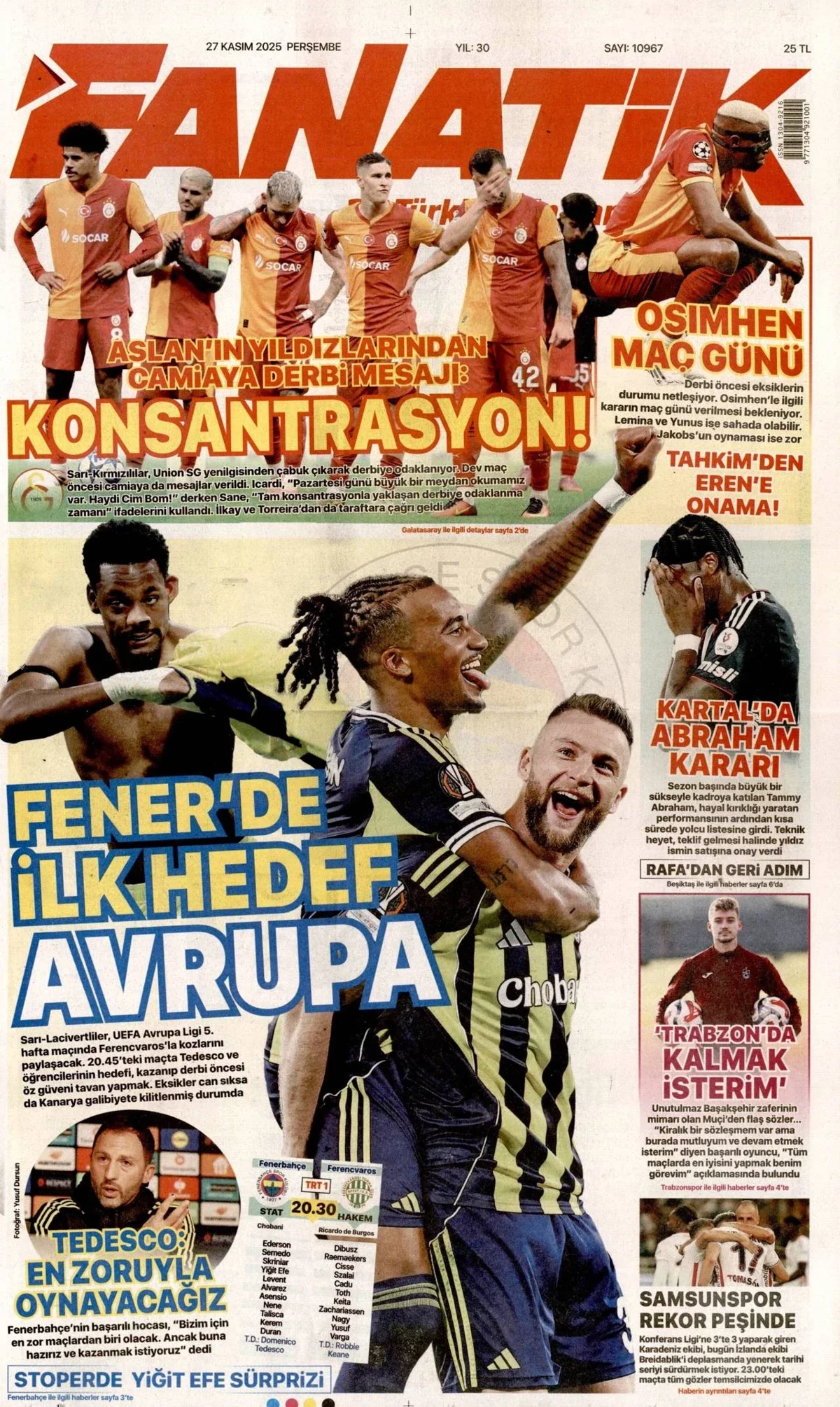 Gazete Manşetleri - 27 Kasım 2025 GAZETE MANŞETLERİ 27 Kas Yazan: Feslikan Haber Ajansı manşetler Feslikan Haber Ajansı