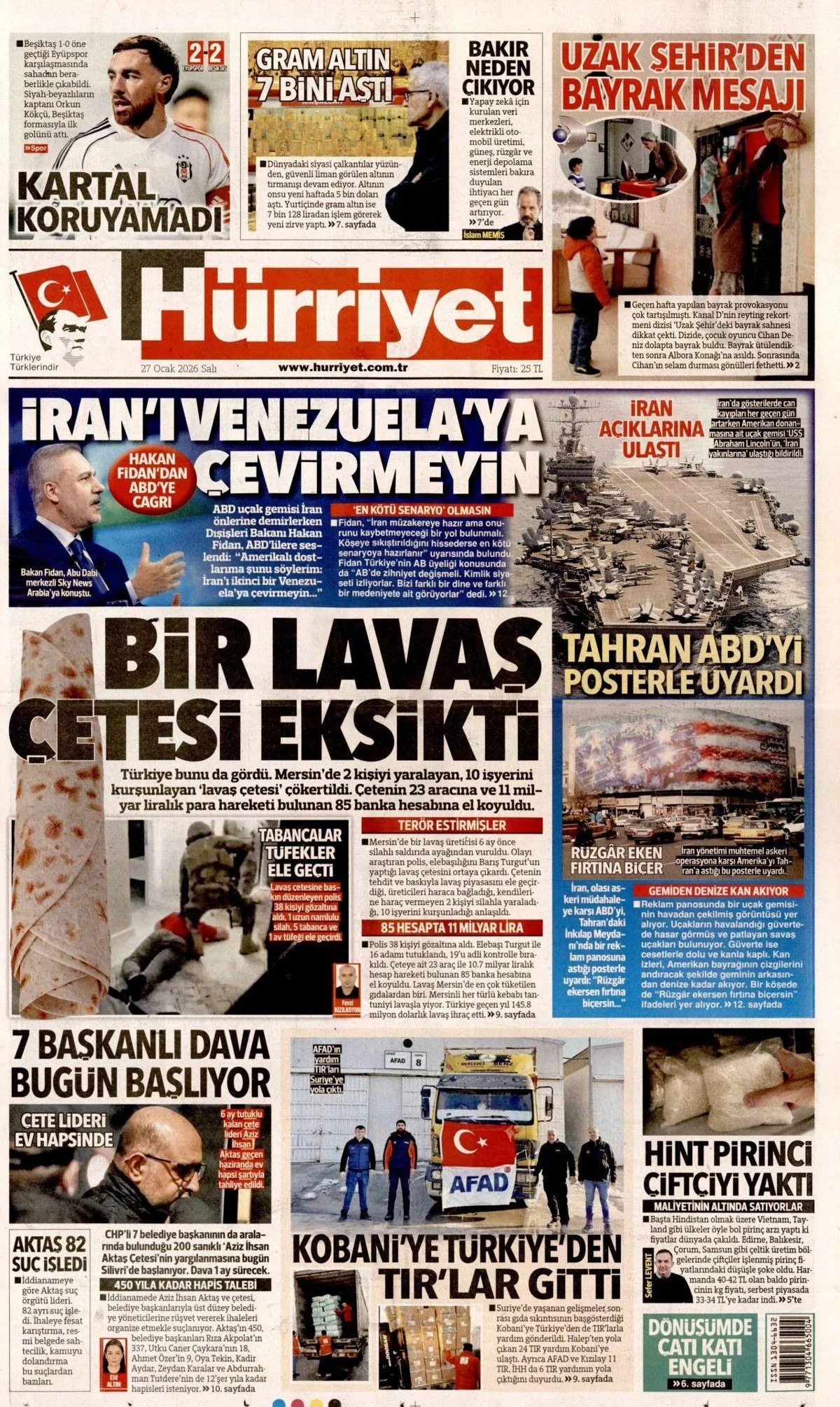Gazete Manşetleri - 27 Ocak 2026 GAZETE MANŞETLERİ 26 Oca Yazan: Feslikan Haber Ajansı manşetler Feslikan Haber Ajansı