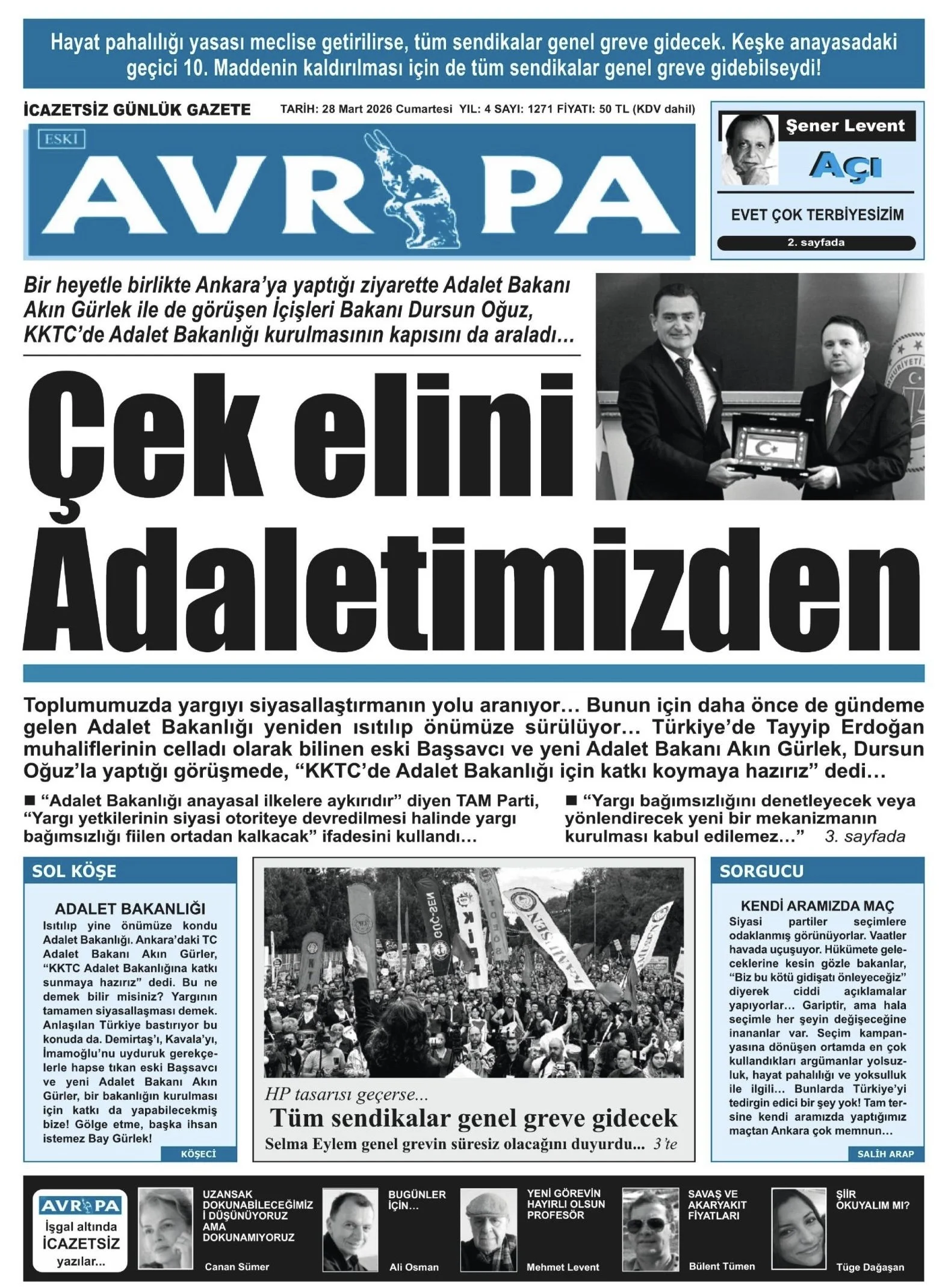Gazete Manşetleri - 28 Mart 2026 GAZETE MANŞETLERİ 28 Mar Yazan: Feslikan Haber Ajansı manşetler Feslikan Haber Ajansı