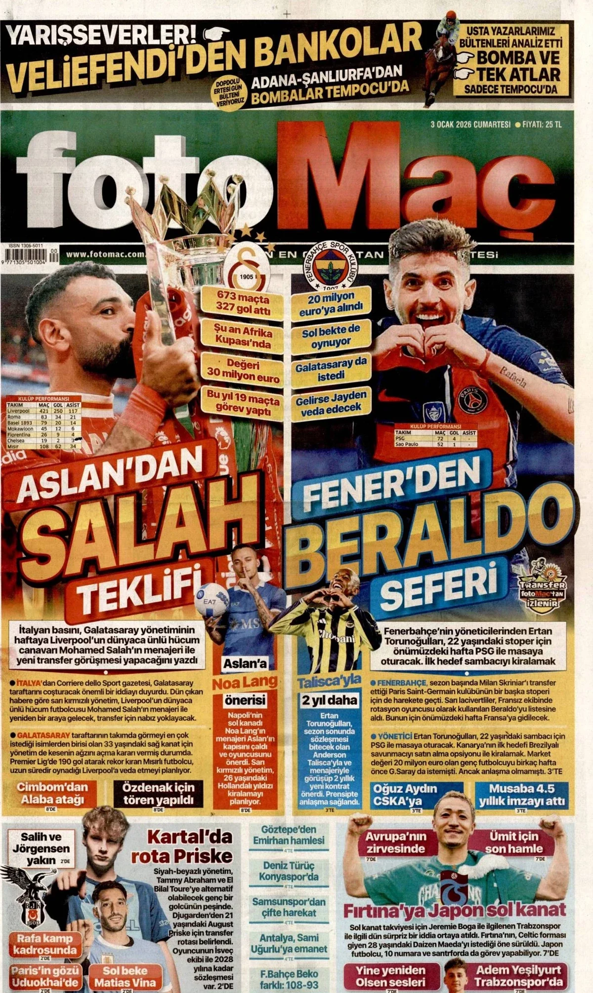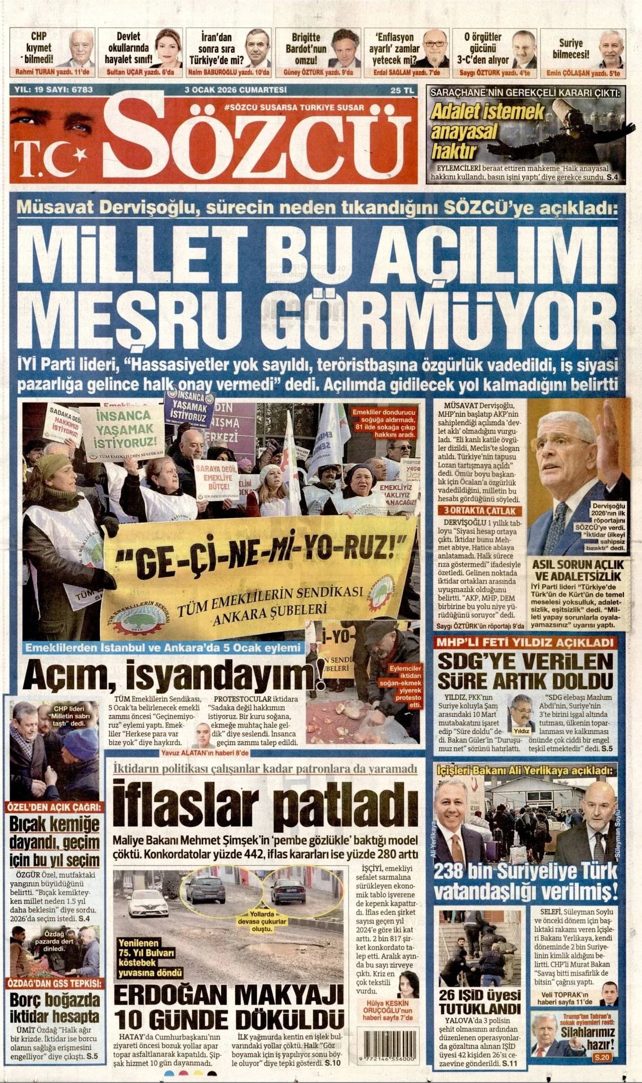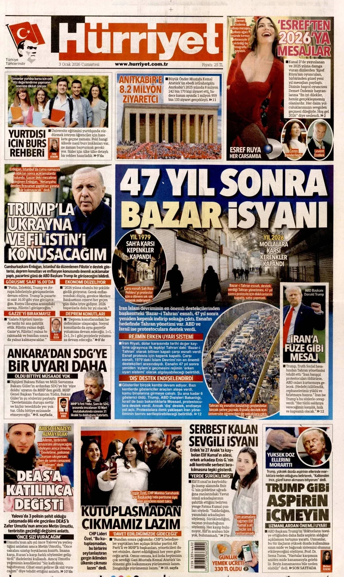 Gazete Manşetleri - 3 Ocak 2026 GAZETE MANŞETLERİ 3 Oca Yazan: Feslikan Haber Ajansı manşetler Feslikan Haber Ajansı