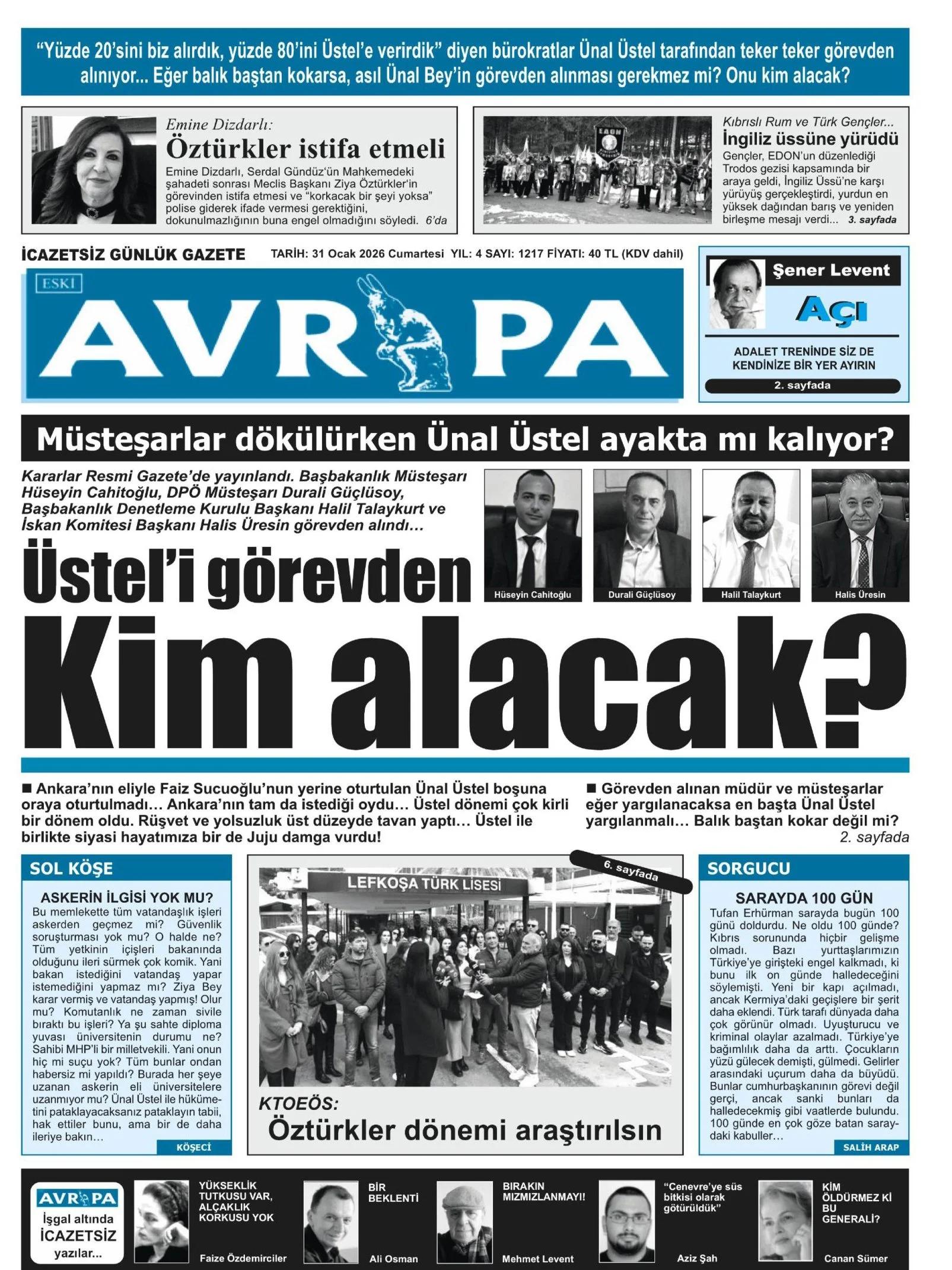 Gazete Manşetleri - 31 Ocak 2026 GAZETE MANŞETLERİ 31 Oca Yazan: Feslikan Haber Ajansı manşetler Feslikan Haber Ajansı