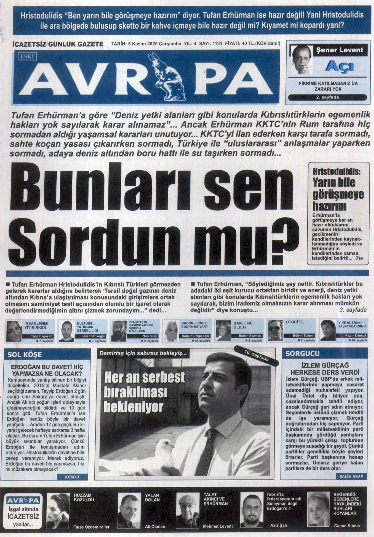 Gazete Manşetleri - 5 Kasım 2025 GAZETE MANŞETLERİ 5 Kas Yazan: Feslikan Haber Ajansı manşetler Feslikan Haber Ajansı