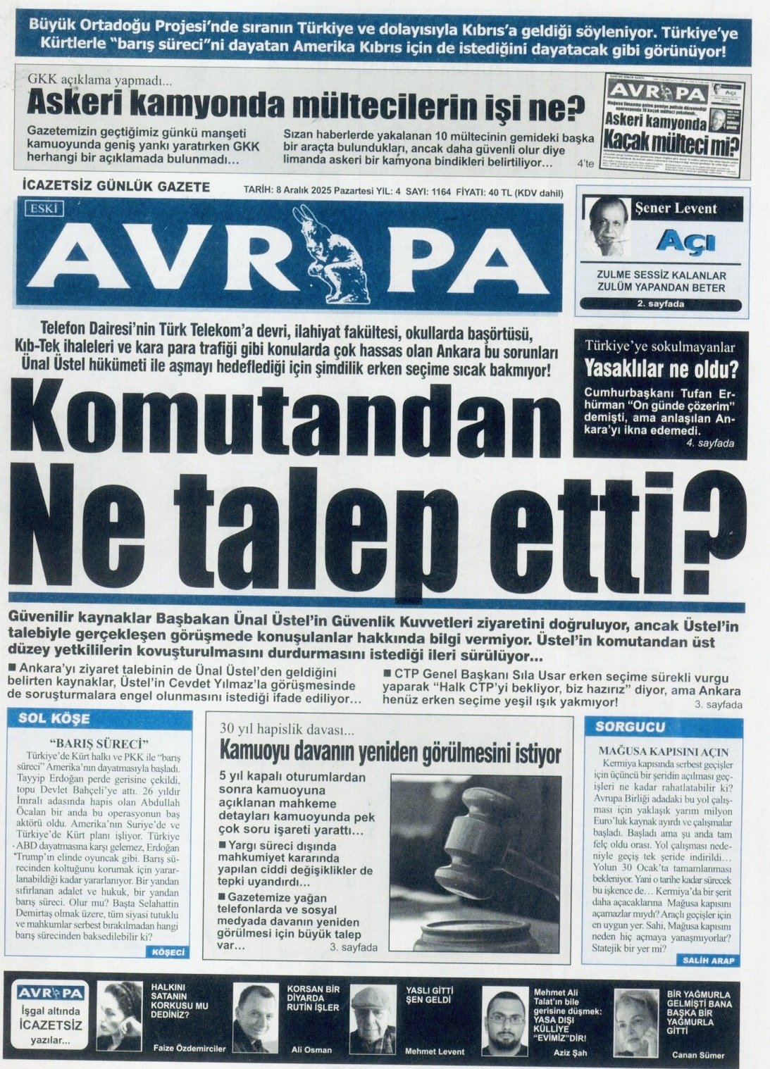 Gazete Manşetleri - 8 Aralık 2025 GAZETE MANŞETLERİ 8 Ara Yazan: Feslikan Haber Ajansı manşetler Feslikan Haber Ajansı