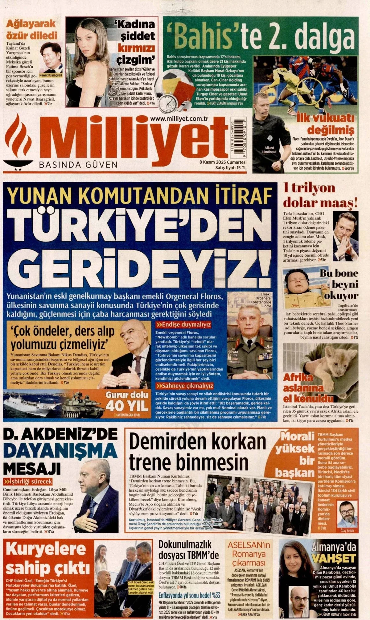 Gazete Manşetleri - 8 Kasım 2025 GAZETE MANŞETLERİ 8 Kas Yazan: Feslikan Haber Ajansı manşetler Feslikan Haber Ajansı