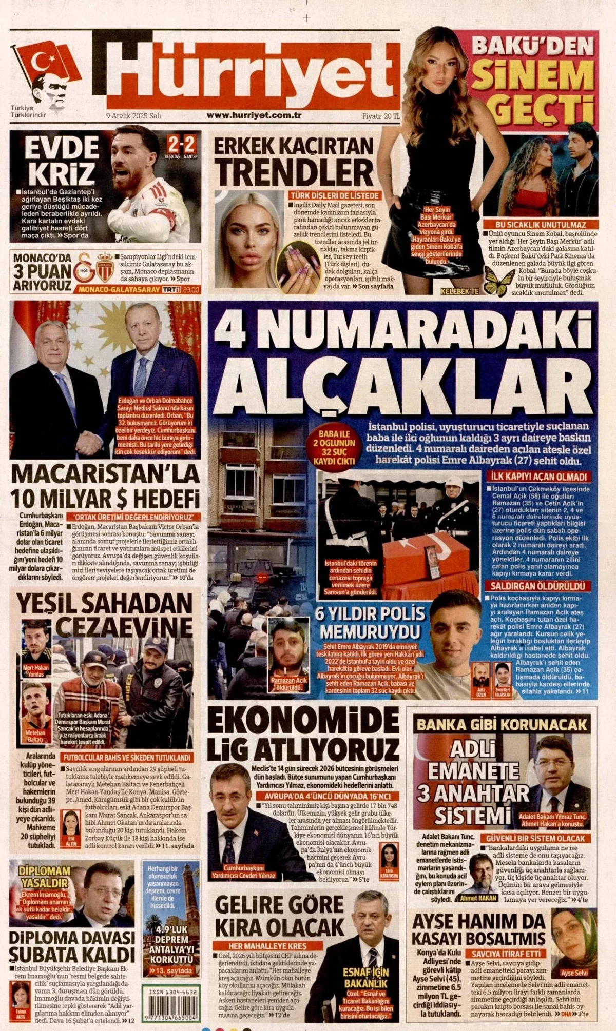 Gazete Manşetleri - 9 Aralık 2925 GAZETE MANŞETLERİ 9 Ara Yazan: Feslikan Haber Ajansı manşetler Feslikan Haber Ajansı