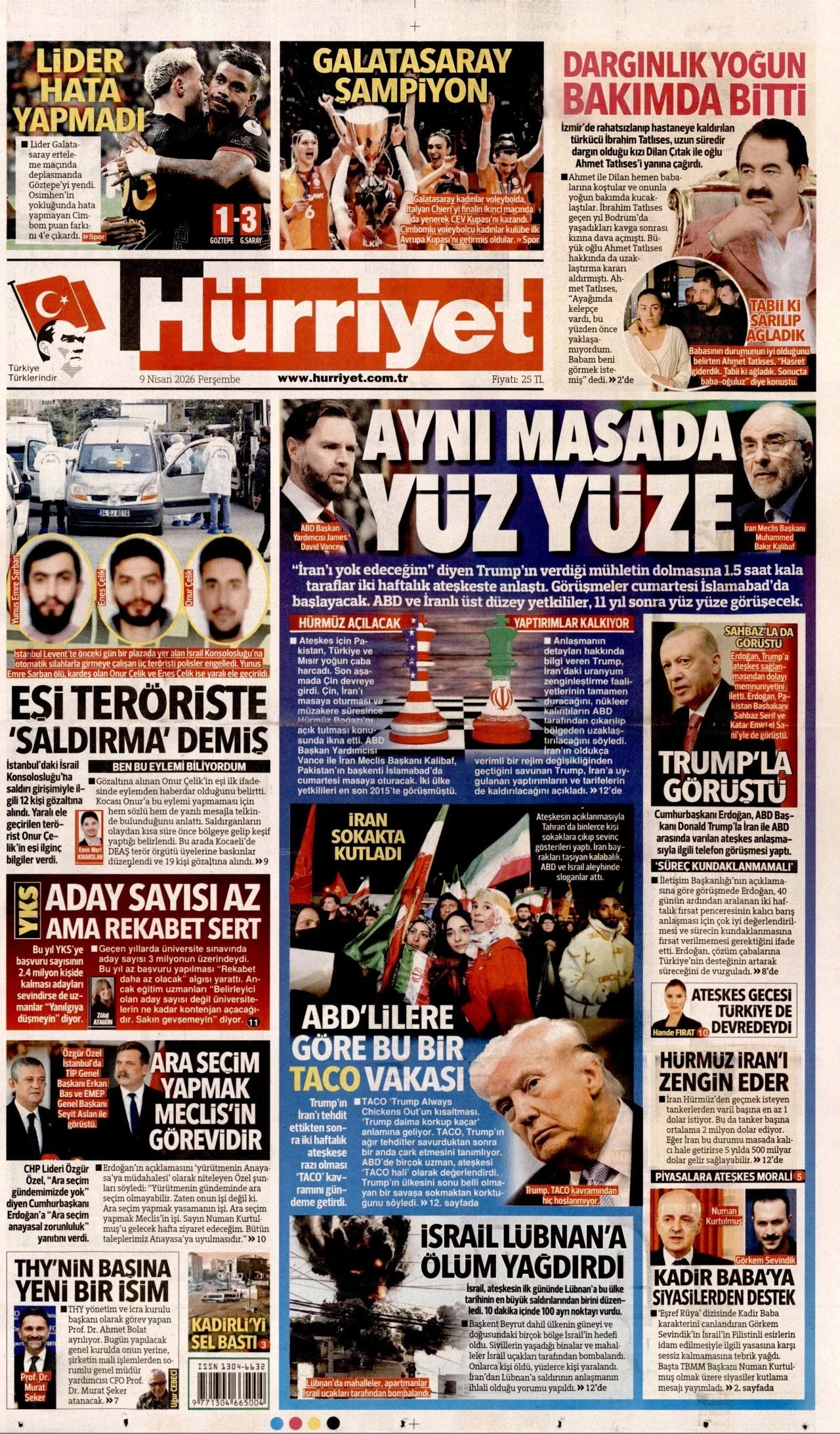 Gazete Manşetleri - 9 Nisan 2026 GAZETE MANŞETLERİ 9 Nis Yazan: Feslikan Haber Ajansı manşetler Feslikan Haber Ajansı