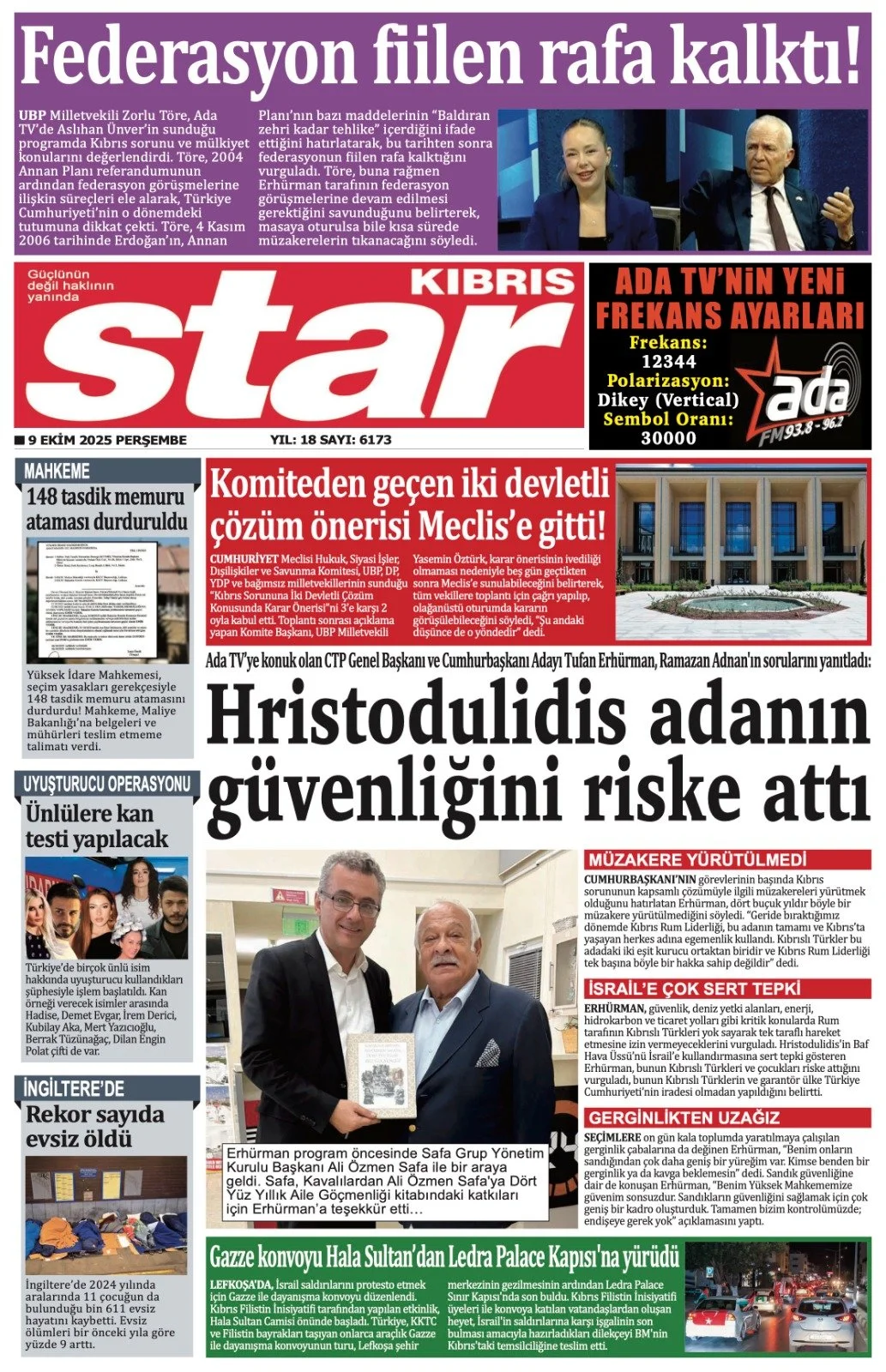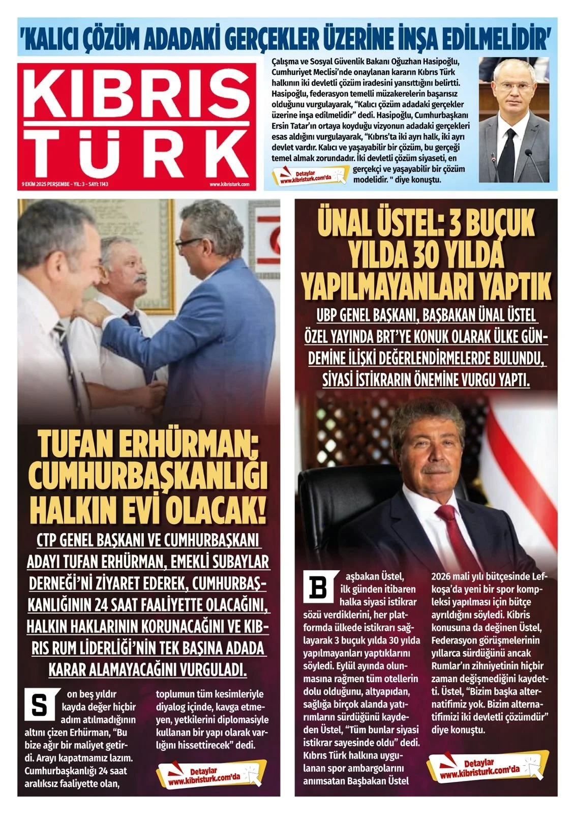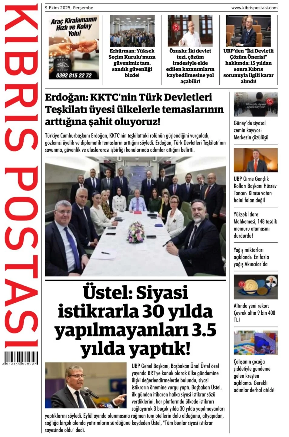 Gazete Manşetleri - 9 Ekim 2025 KIBRIS 9 Eki Yazan: Feslikan Haber Ajansı KKTC ve Türkiye gazetelerinin manşetleri burada.. Ana Sayfa Feslikan Haber Ajansı