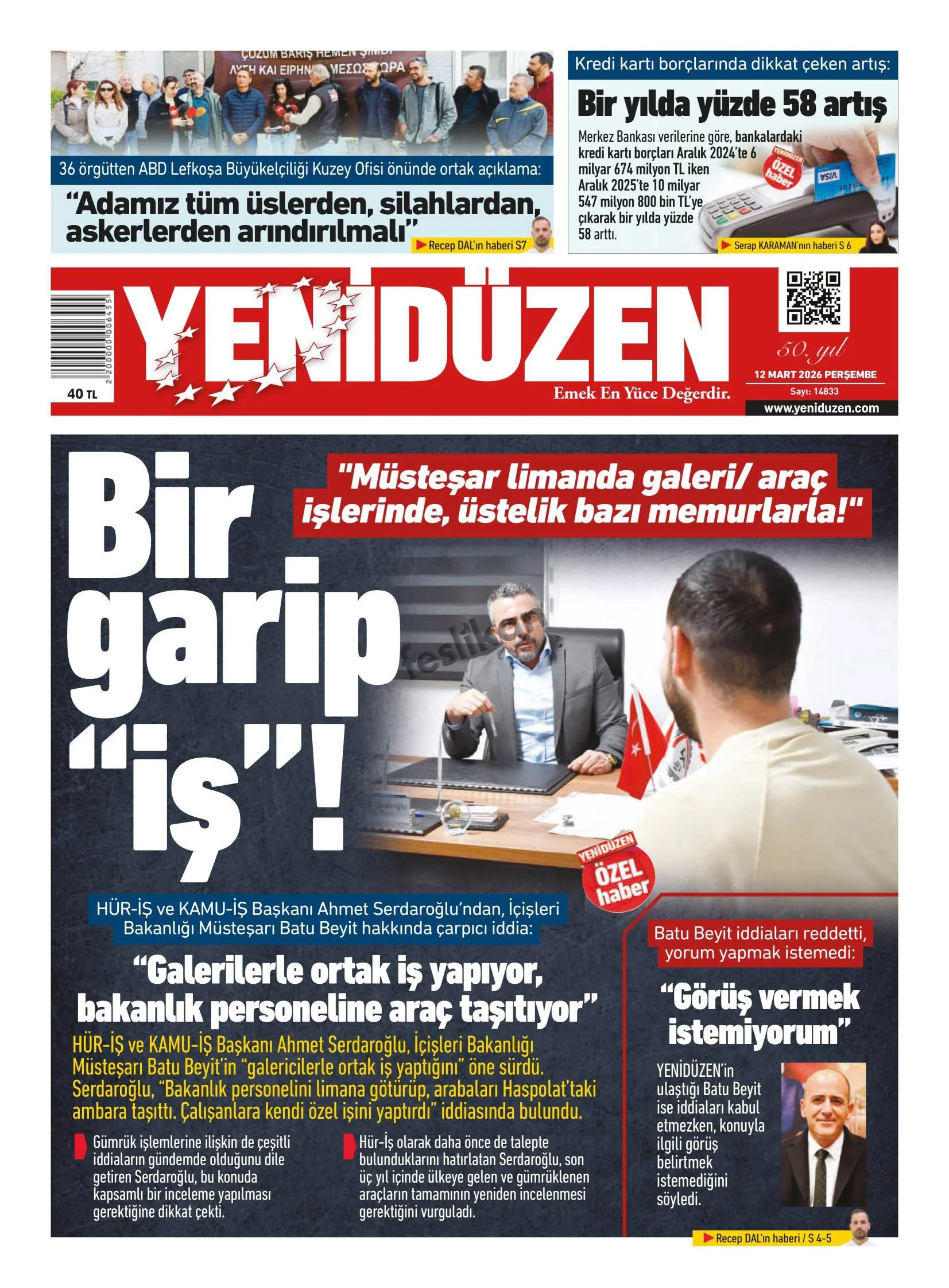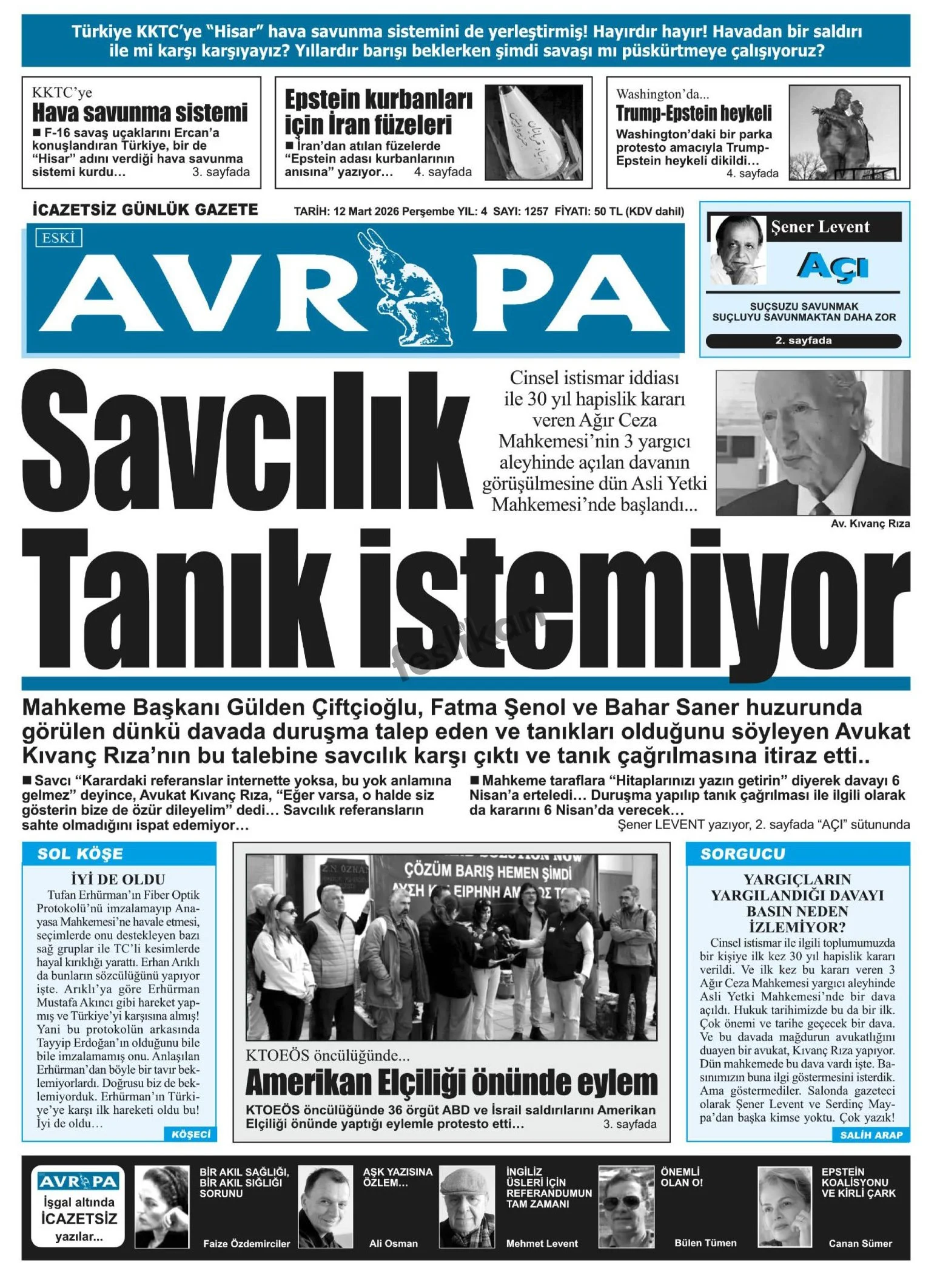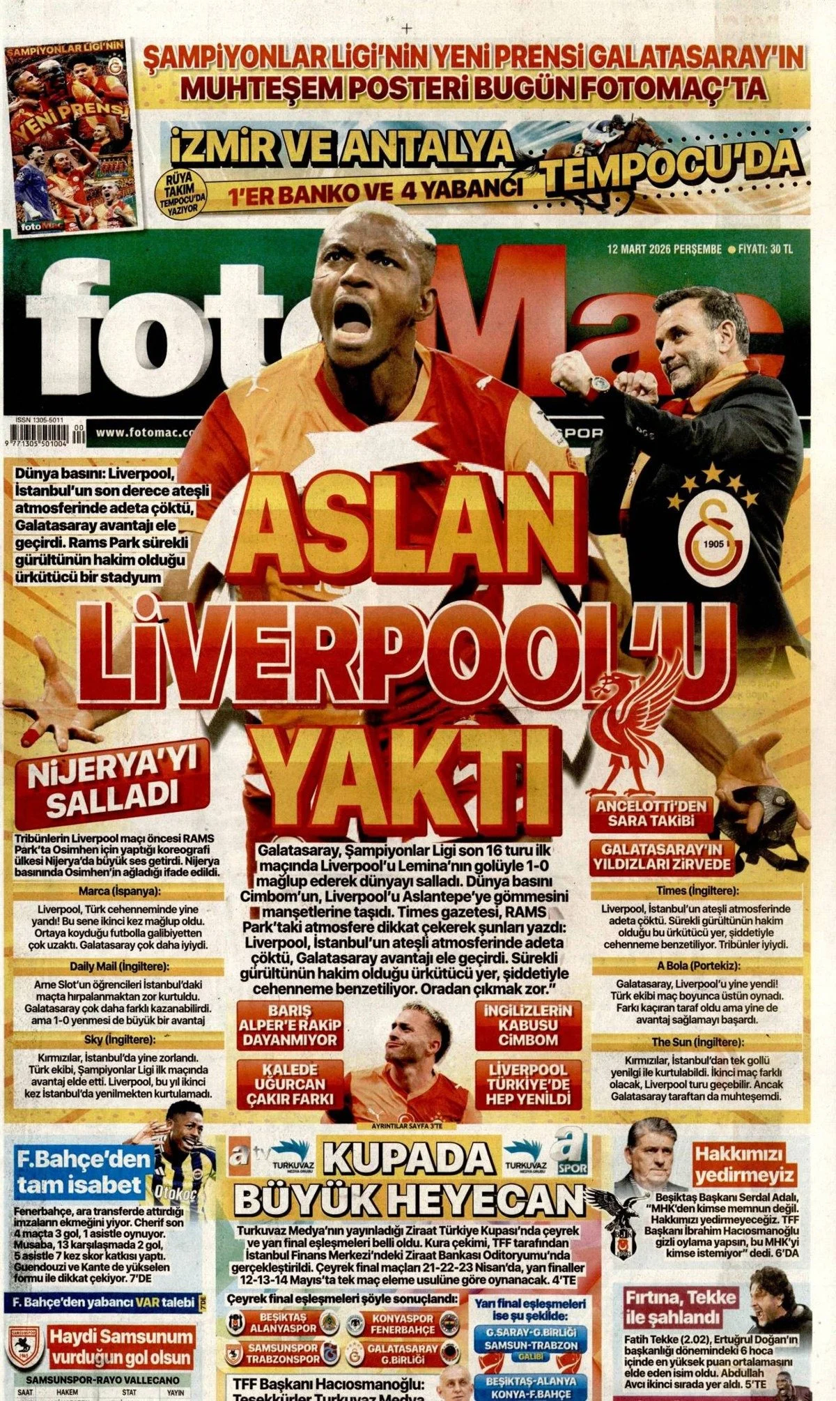 Gazete Manşetleri - 12 Mart 2026 GAZETE MANŞETLERİ 12 Mar Yazan: Feslikan Haber Ajansı manşetler Feslikan Haber Ajansı