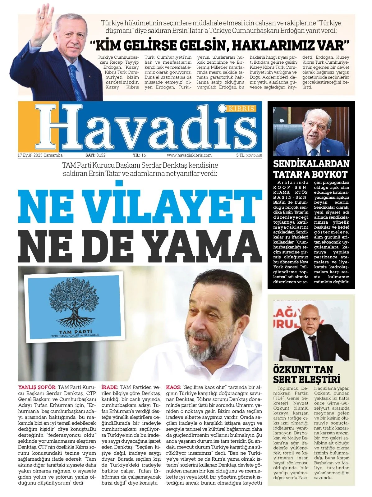 Gazete Manşetleri - 17 Eylül KIBRISGAZETE MANŞETLERİ 17 Eyl Yazan: Feslikan Haber Ajansı KKTC ve Türkiye gazetelerinin manşetleri burada… Ana Sayfamanşetler Feslikan Haber Ajansı