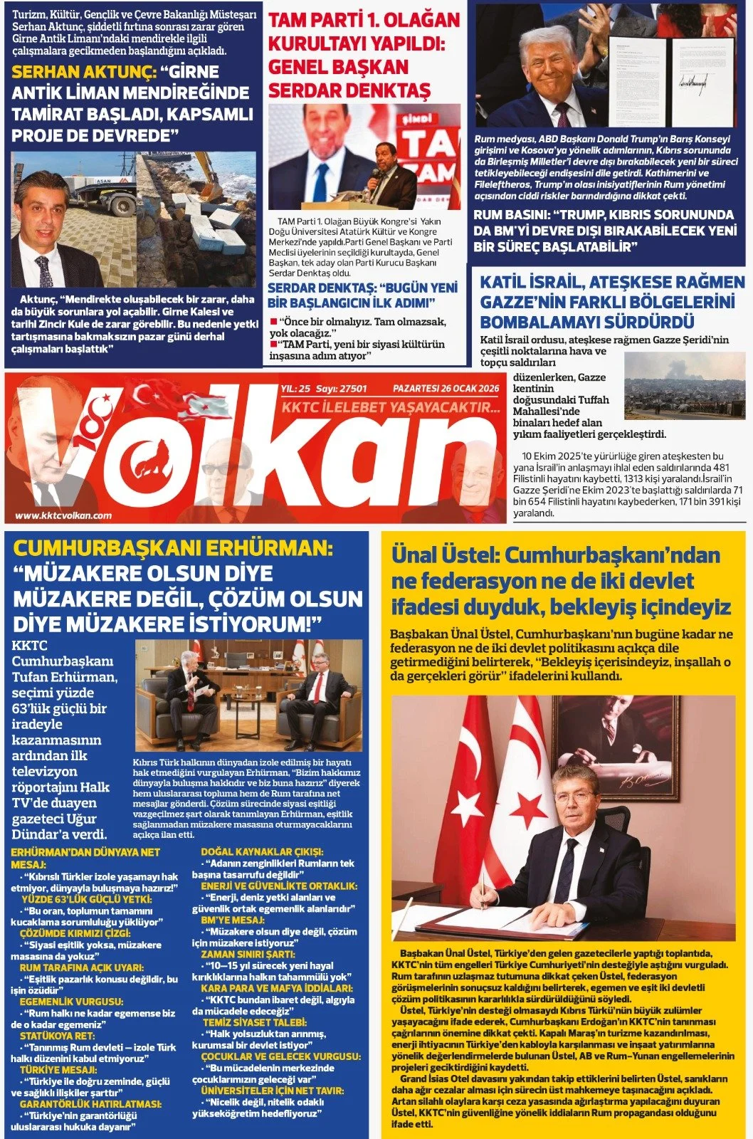 Gazete Manşetleri - 26 Ocak 2026 GAZETE MANŞETLERİ 26 Oca Yazan: Feslikan Haber Ajansı manşetler Feslikan Haber Ajansı