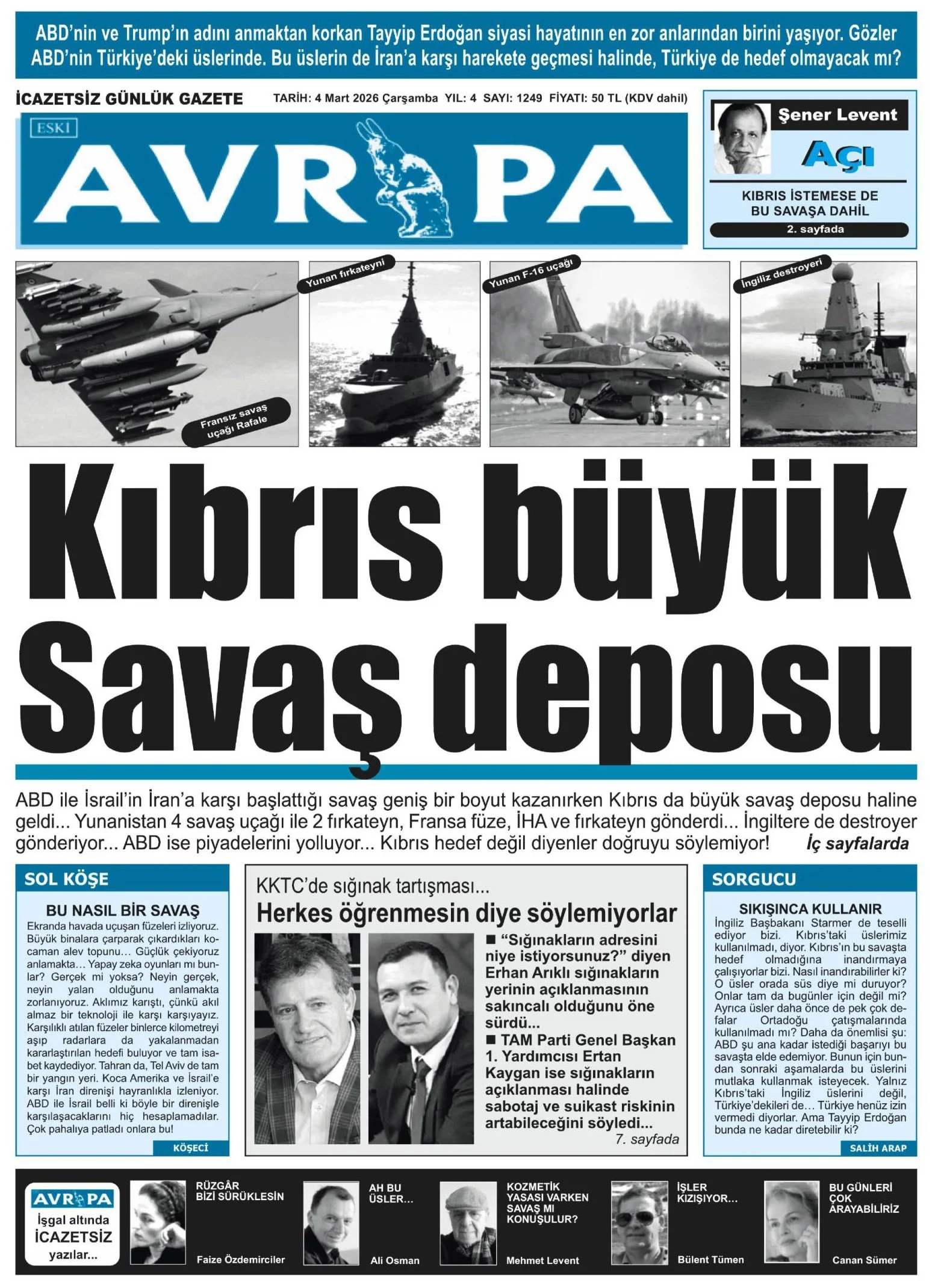 Gazete Manşetleri - 4 Mart 2026 GAZETE MANŞETLERİ 3 Mar Yazan: Feslikan Haber Ajansı manşetler Feslikan Haber Ajansı