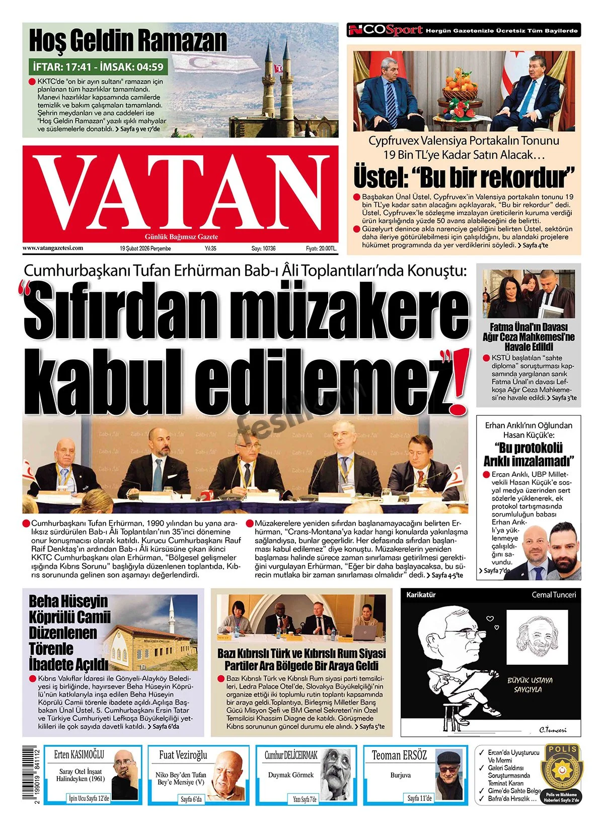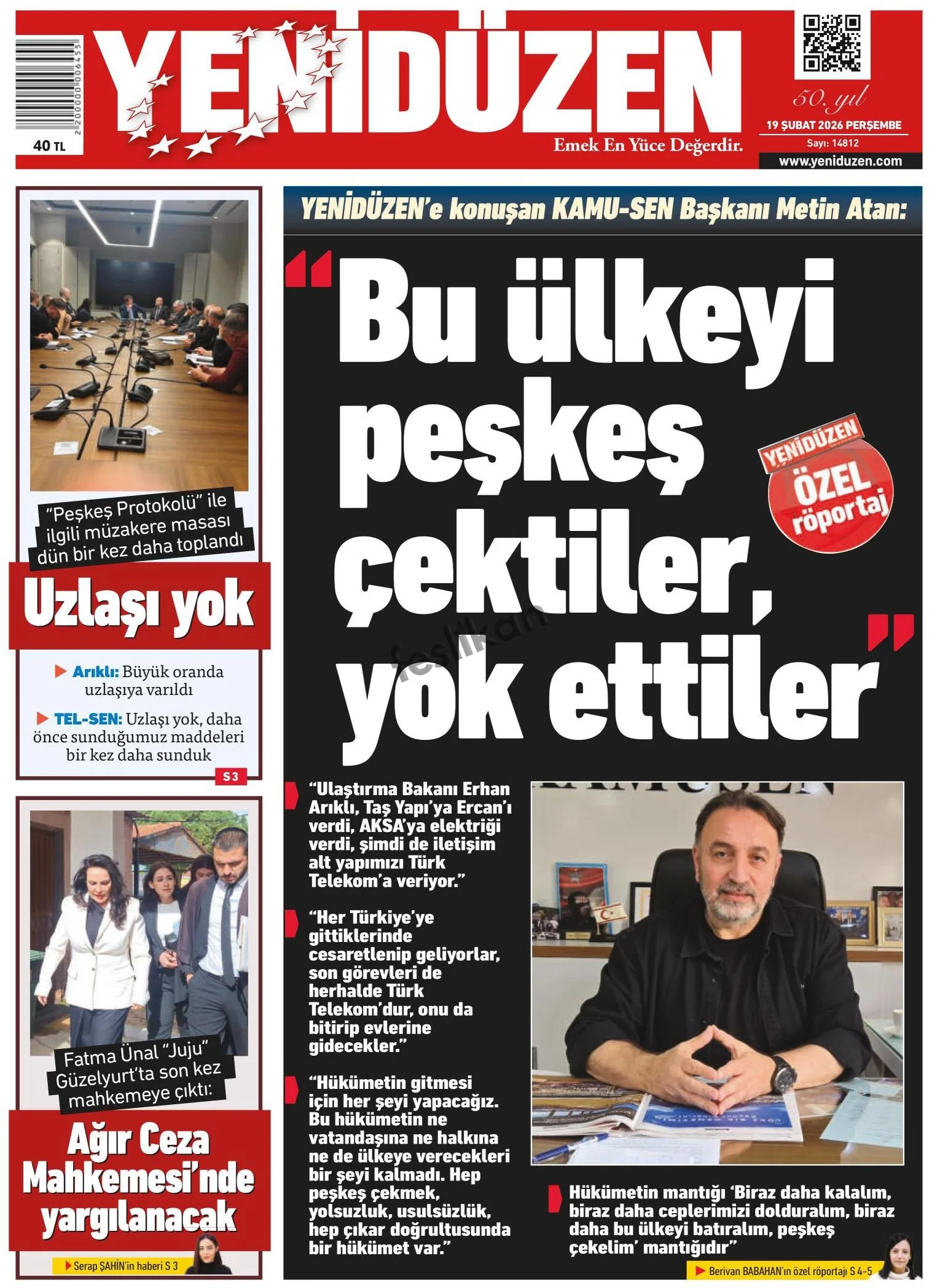 Gazete Manşetleri - 19 Şubat 2026 GAZETE MANŞETLERİ 18 Şub Yazan: Feslikan Haber Ajansı manşetler Feslikan Haber Ajansı
