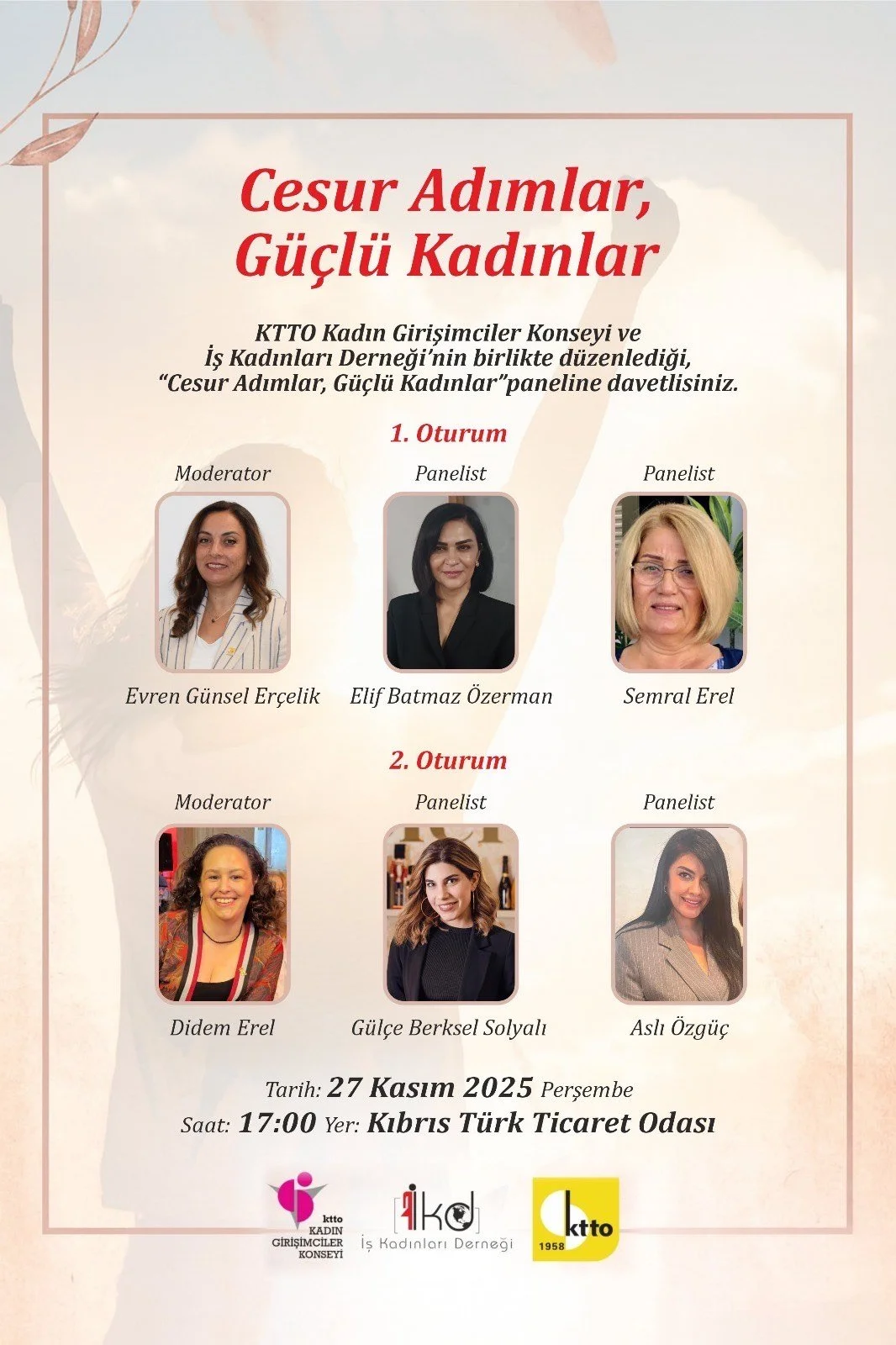 Kıbrıs Türk Ticaret Odası (KTTO) Kadın Girişimciler Konseyi ve İş Kadınları Derneği’nin iş birliğinde Cesur Adımlar, Güçlü Kadınlar” paneli düzenleniyor.