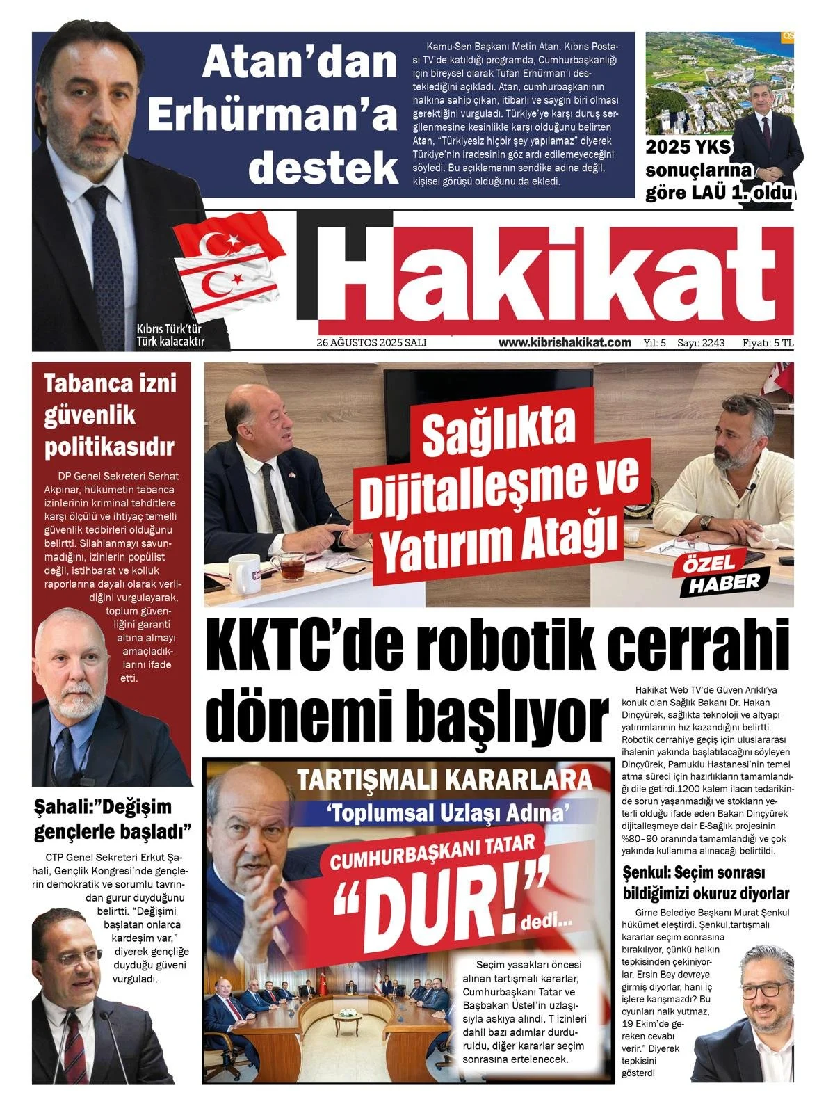 Gazete Manşetleri - 26 Ağustos 2025 KIBRIS 26 Ağu Yazan: Feslikan Haber Ajansı KKTC ve Türkiye Gazetelerinin manşetleri burada… Ana Sayfa Feslikan Haber Ajansı
