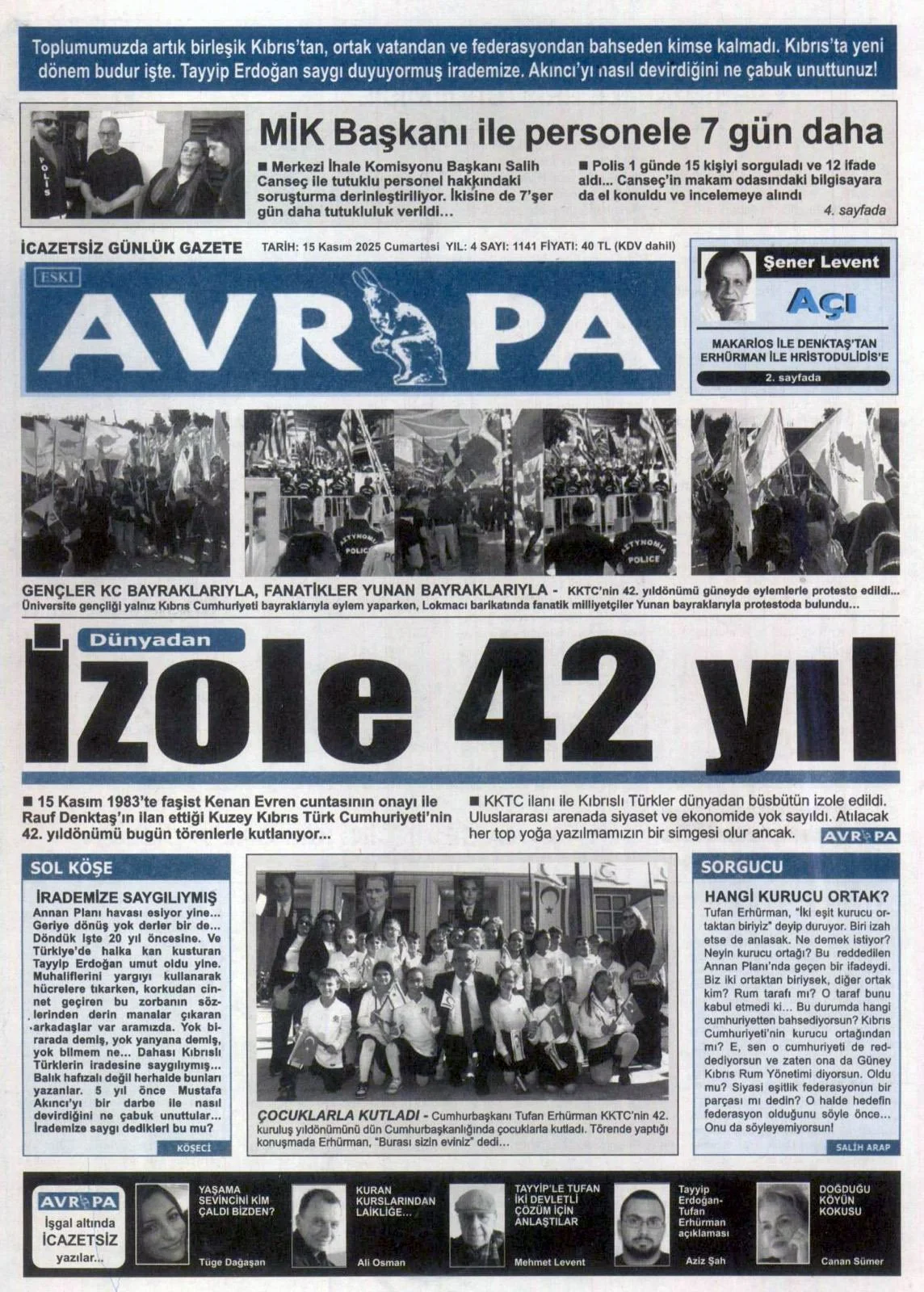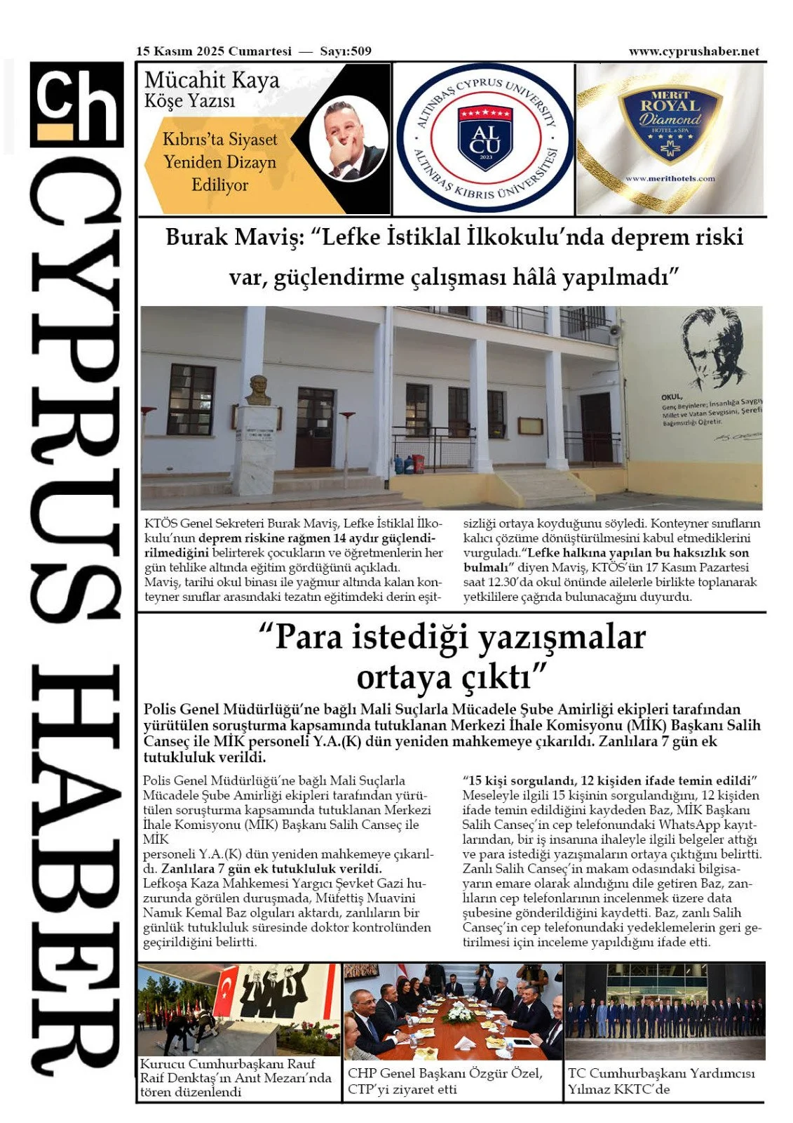 Gazete Manşetleri - 15 Kasım 2025 GAZETE MANŞETLERİ 15 Kas Yazan: Feslikan Haber Ajansı manşetler Feslikan Haber Ajansı
