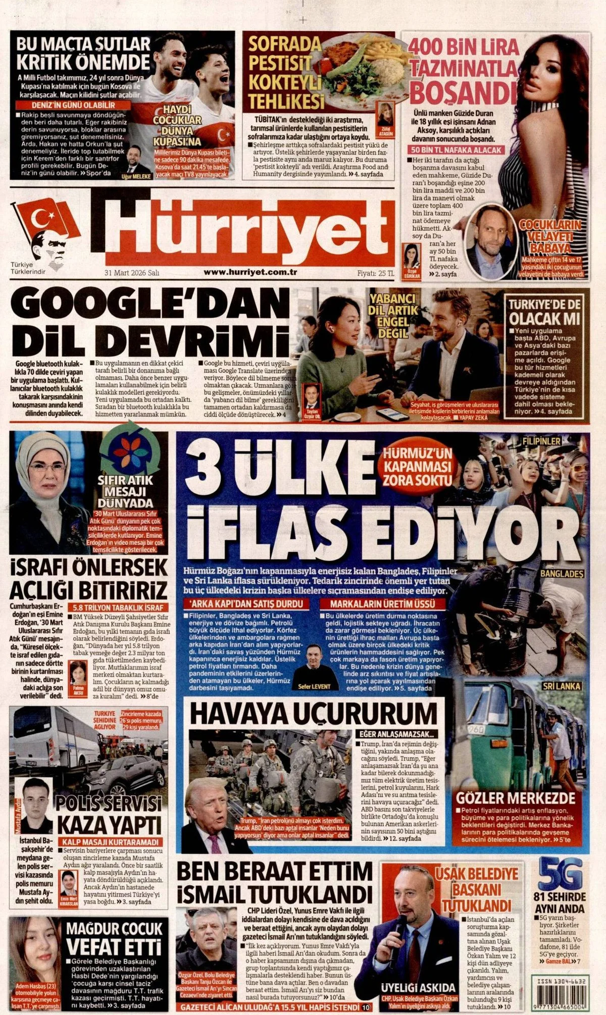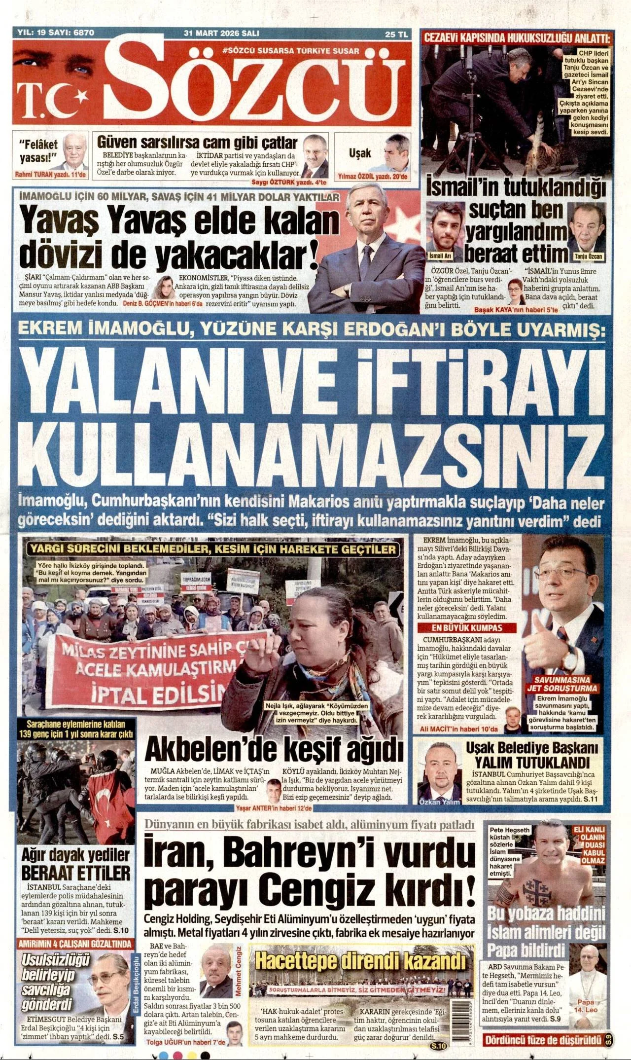 Gazete Manşetleri - 31 Mart 2026 GAZETE MANŞETLERİ 30 Mar Yazan: Feslikan Haber Ajansı manşetler Feslikan Haber Ajansı