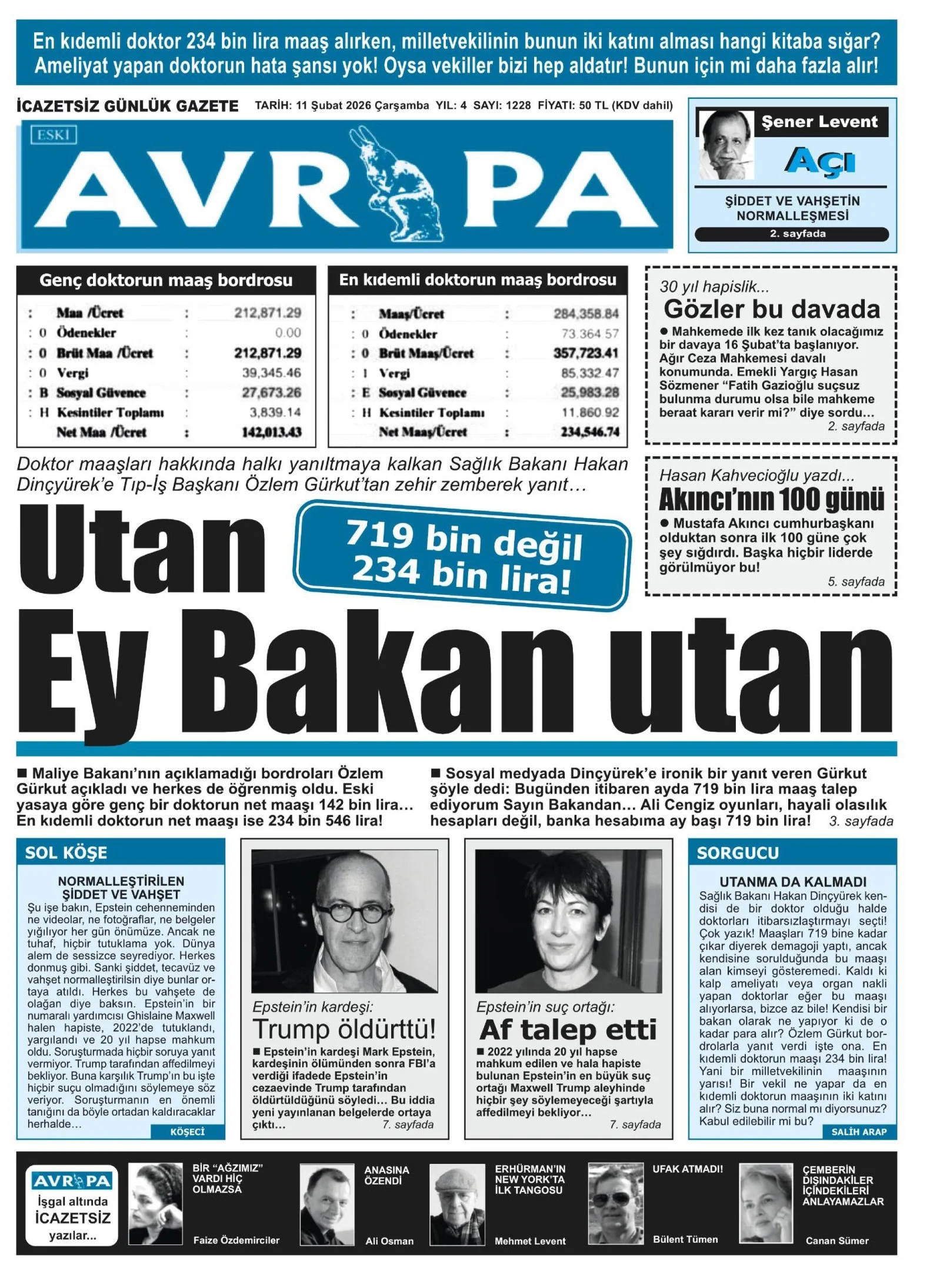 Gazete Manşetleri - 11 Şubat 2026 GAZETE MANŞETLERİ 11 Şub Yazan: Feslikan Haber Ajansı manşetler Feslikan Haber Ajansı
